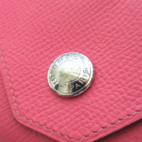 HERMES Levain Quatre Epsom Leather Flap Wallet/Coin Case with Serie Buttons, Rose Azalee, Women\'s