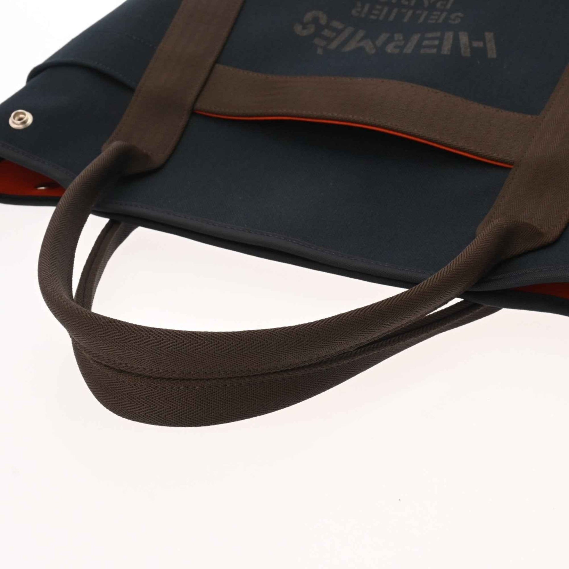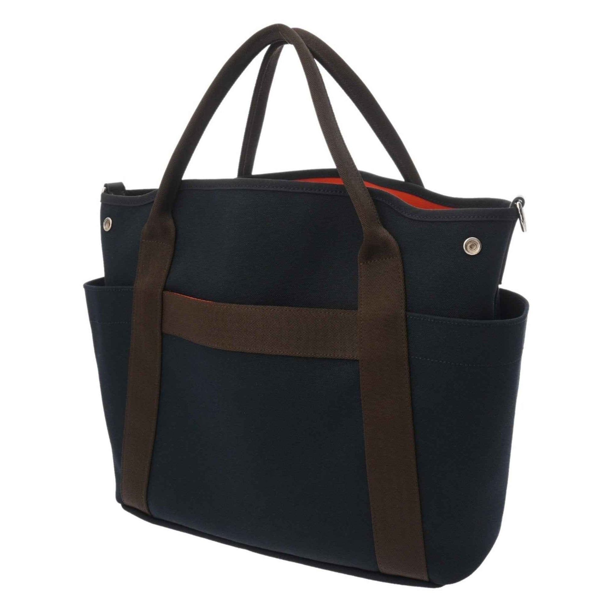 HERMES Sac de Pansage Groom Navy C Stamp (circa 2018) Women\'s Toile Chevron Tote Bag