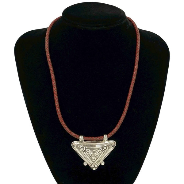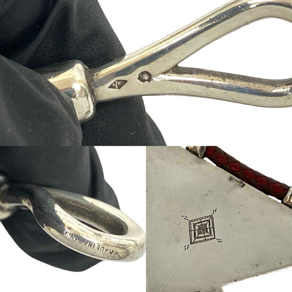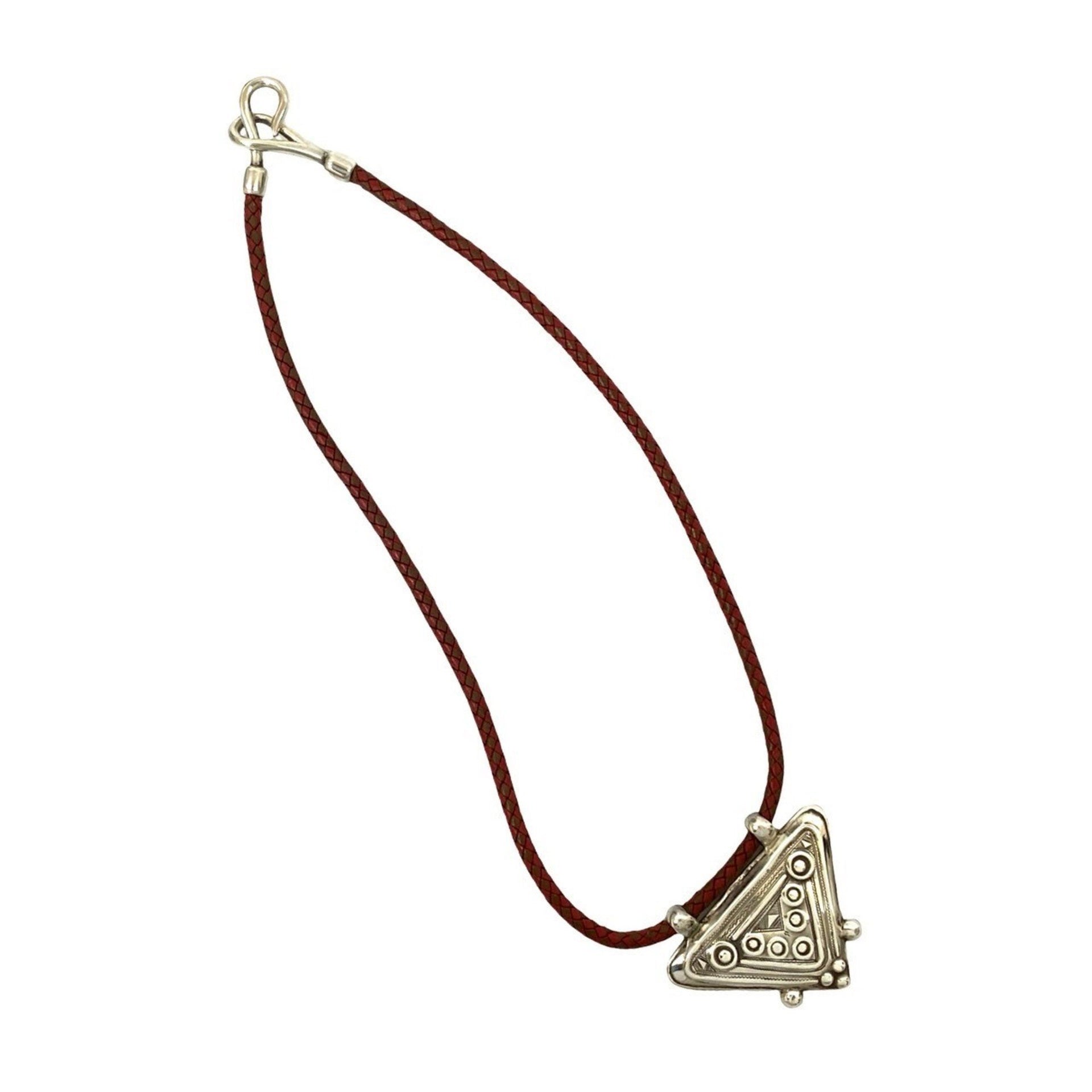 HERMES Touareg Necklace, Leather and Sterling Silver, Pendant, Choker, Red, Brown, 30249