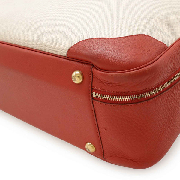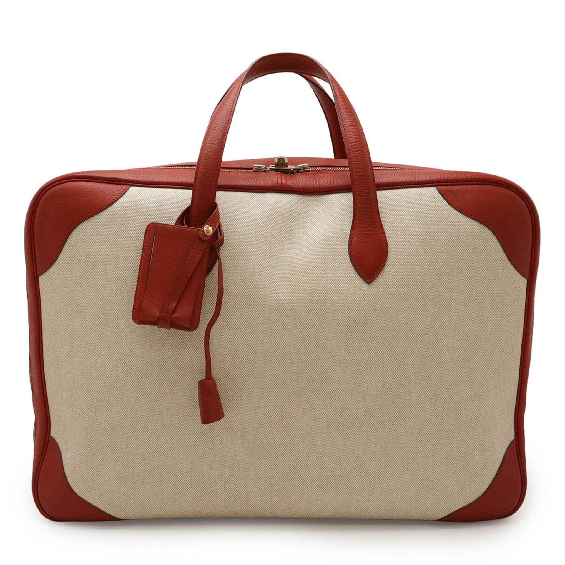 HERMES Victoria 50 Boston/Travel Bag in Canvas and Coated Leather, Beige Red