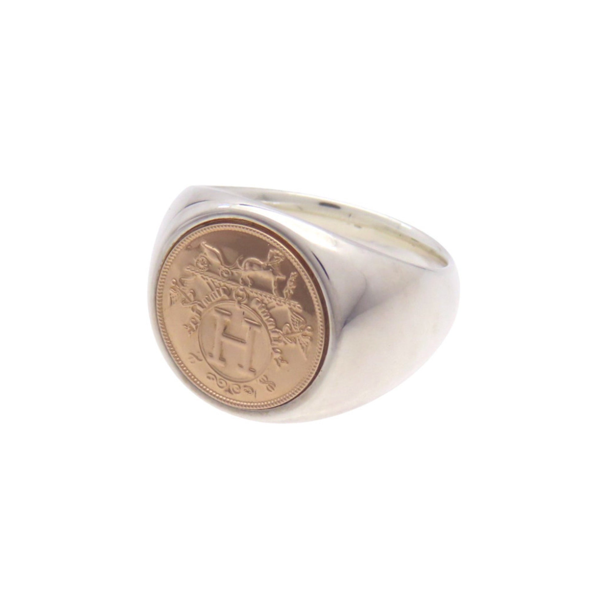 Like new Hermès Exlibris Chevalier 18KPG/925 Silver Ring #55 Pink Gold 1755 HERMES Women\'s