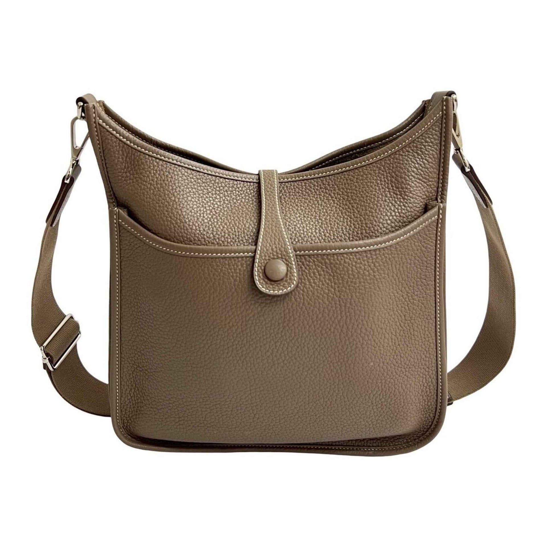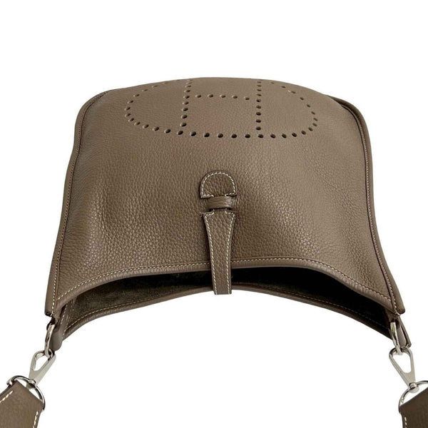 □N HERMES Evelyn 3 Taurillon Clemence Leather Shoulder Bag/Pochette/Sacoche/Etoupe 18104