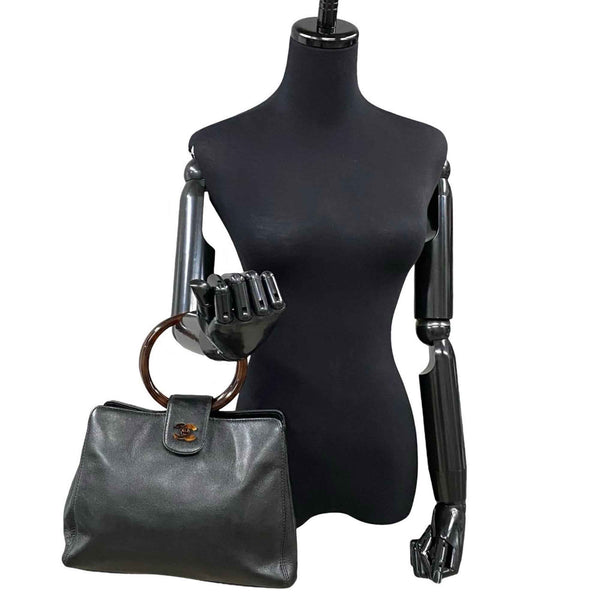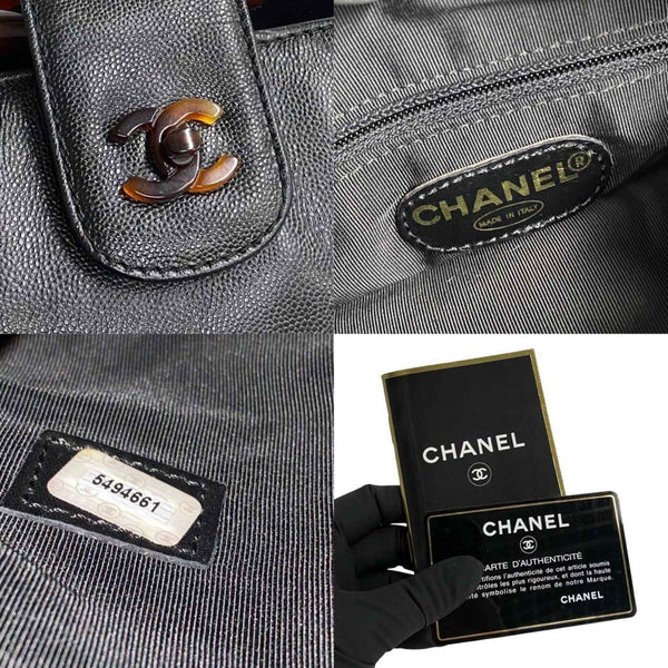 CHANEL Coco Mark Caviar Leather and Plastic Handbag, Black, 23822