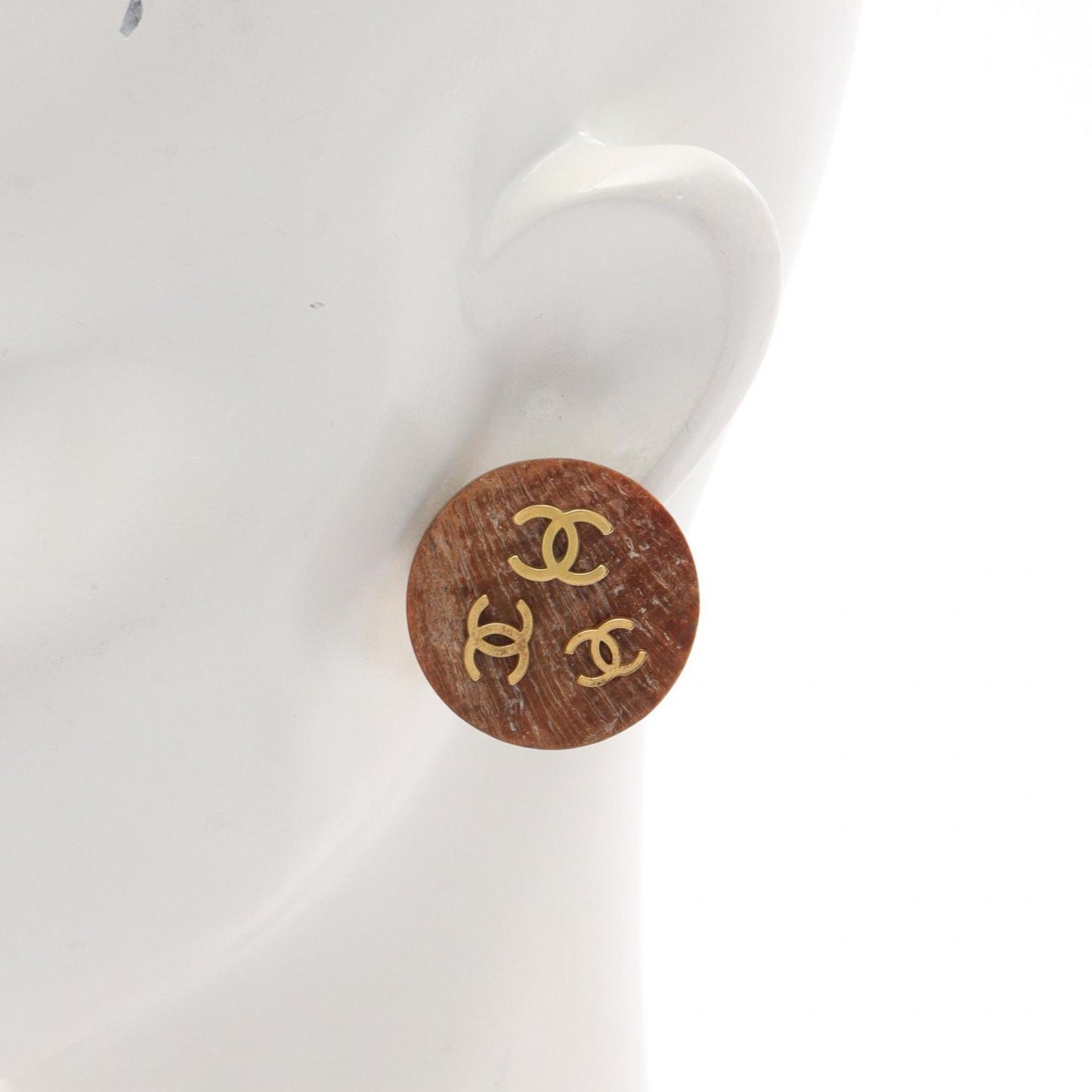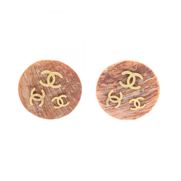 CHANEL Triple Coco Mark Shell Earrings for Women in Brown and Pink