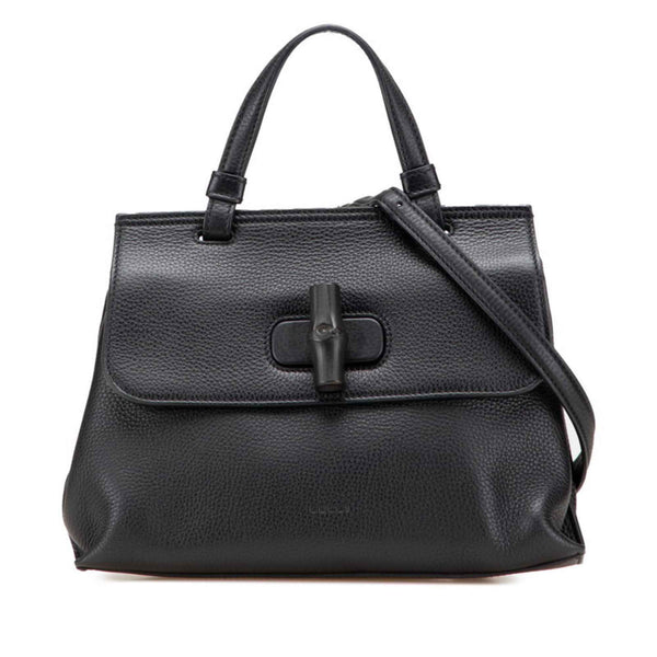 Gucci Bamboo Daily Handbag/Shoulder Bag 2WAY 370831 Black Leather Women\'s GUCCI