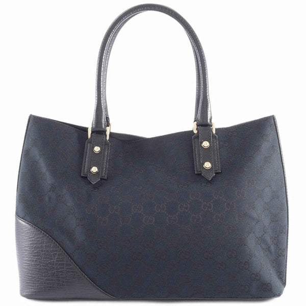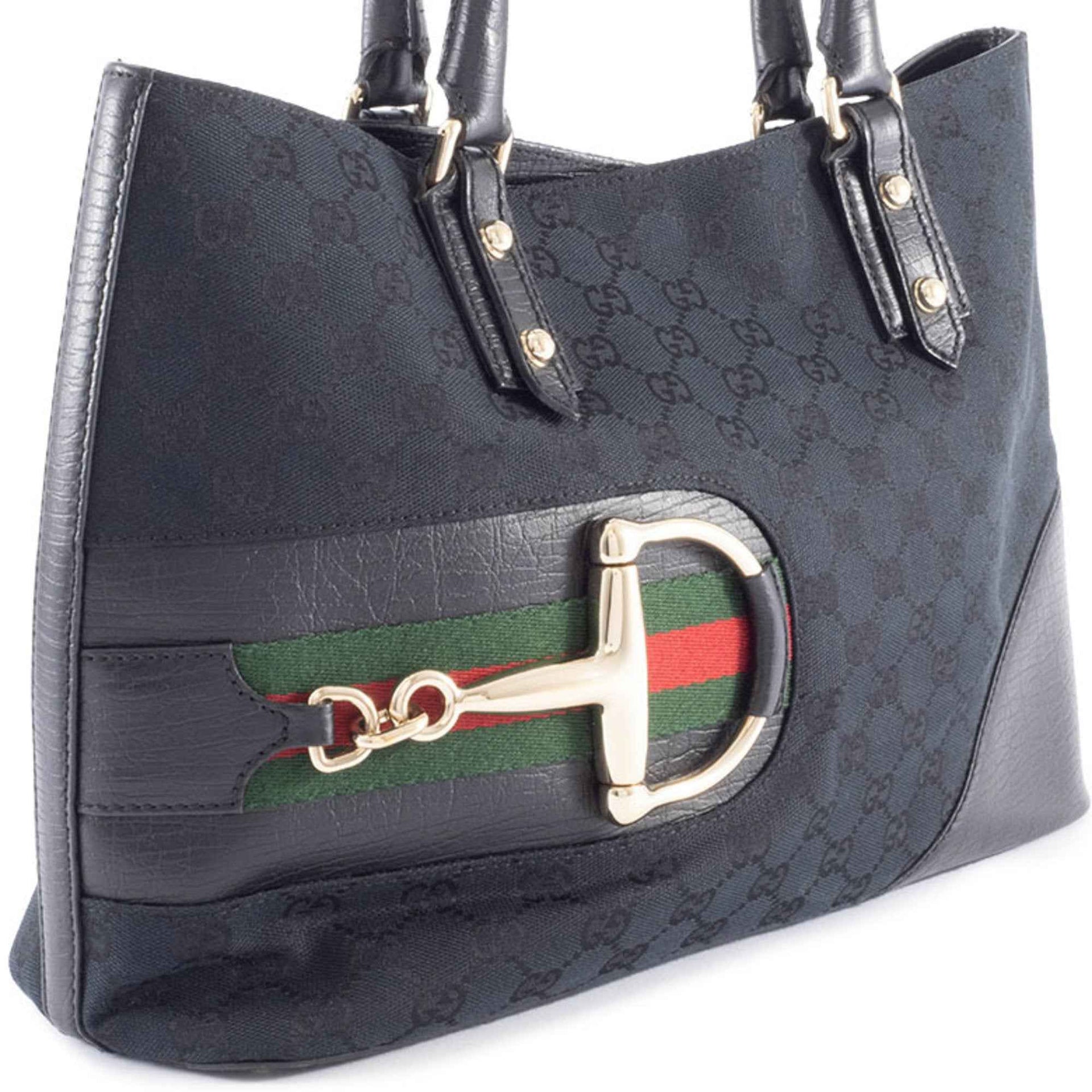 Gucci Horsebit Tote Bag in Black GG Canvas with Sherry Line (137385)