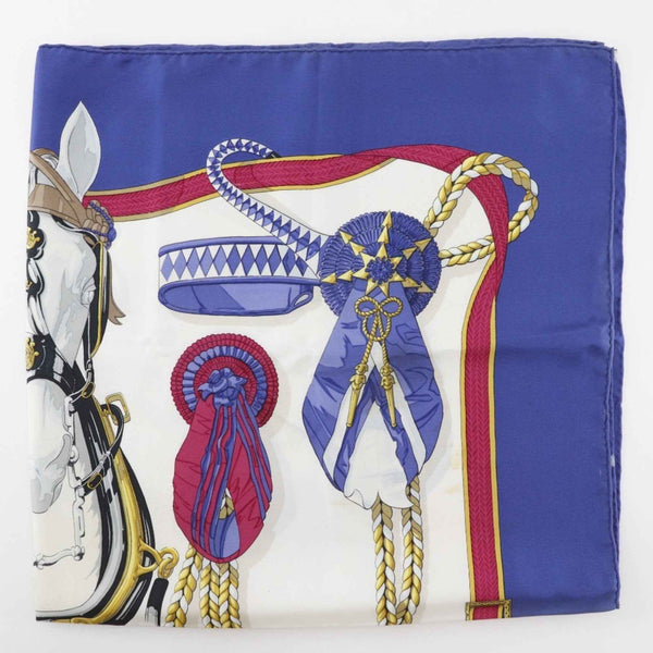 Hermes Hermès Carree 90 Scarf, Frontaux et Cocardes, Front Rosette, Silk, Blue, Carree90, Women\'s