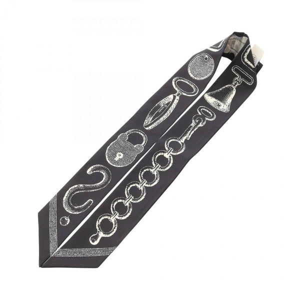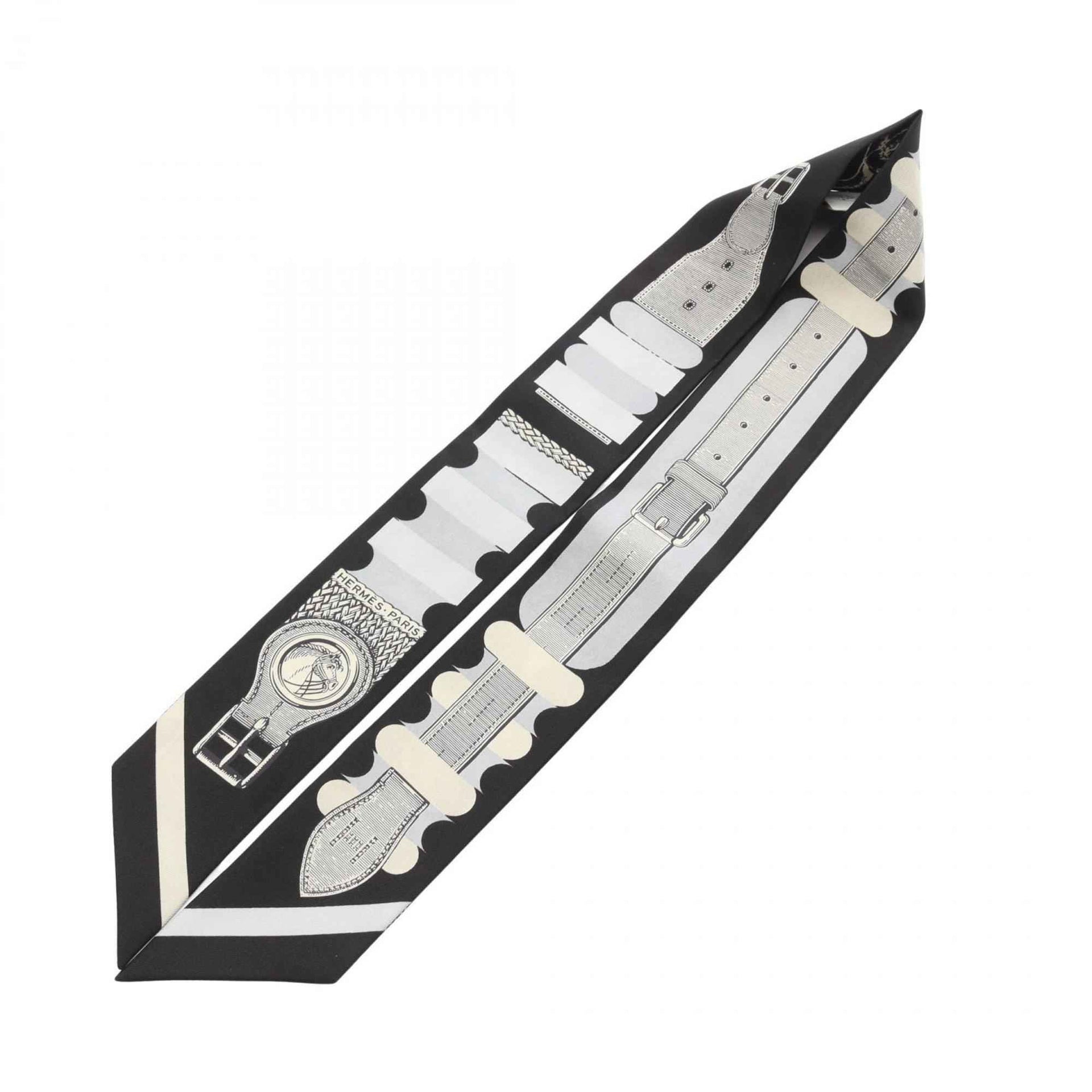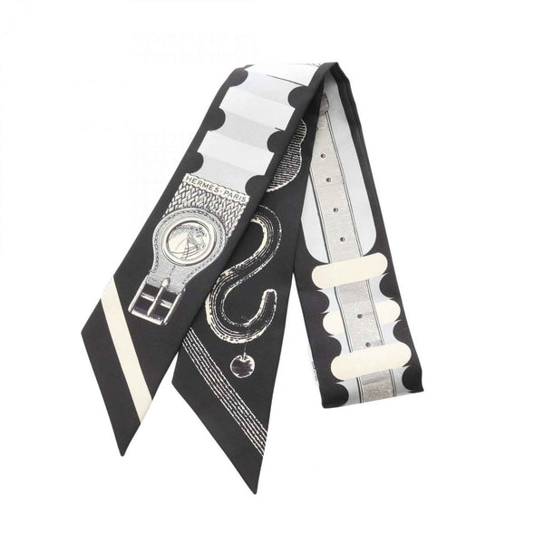 Hermes Hermès Twilly Inventaire Poetique de Brides a Bloc Silk Scarf for Women in Black, Ivory, and Gray