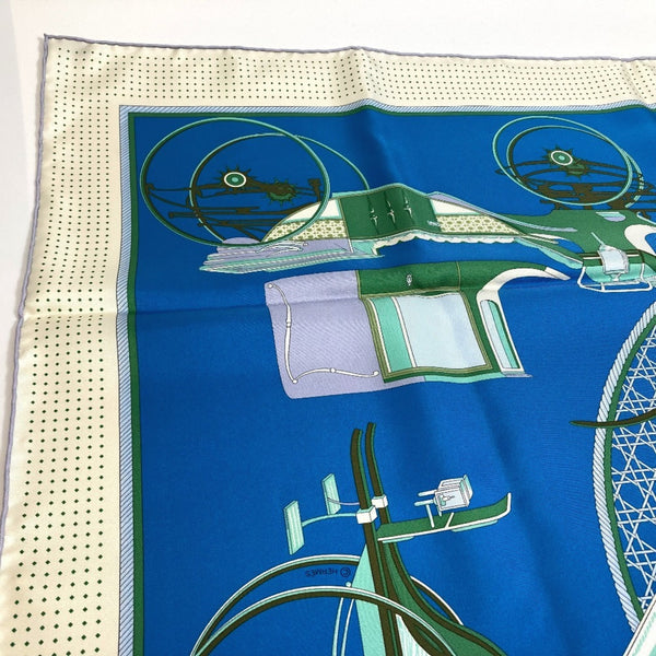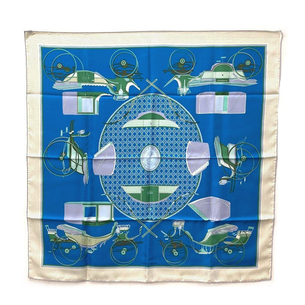 HERMES LA PERRIERE Carriage Carré 90 Silk Scarf Muffler Women\'s Blue/Green/Ivory