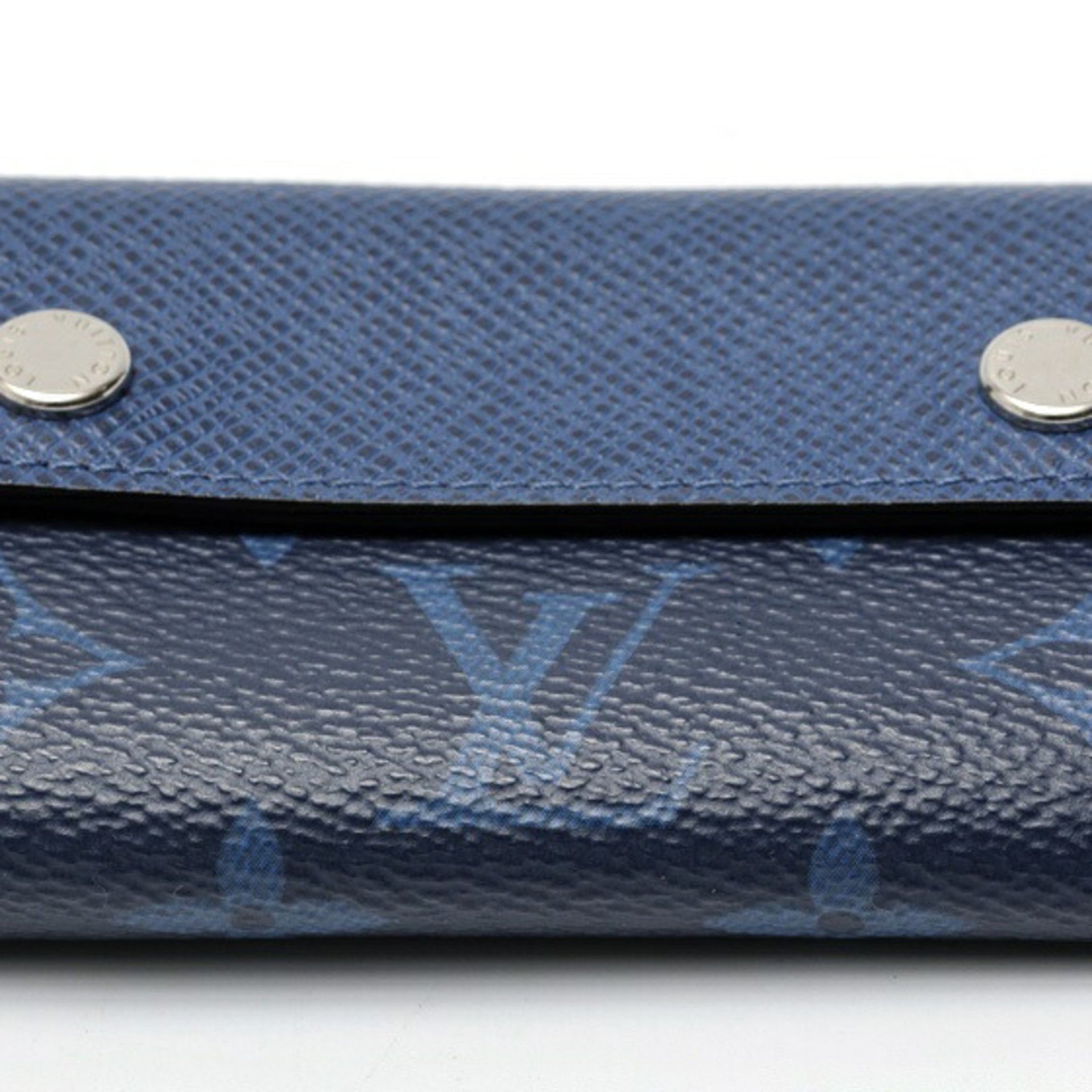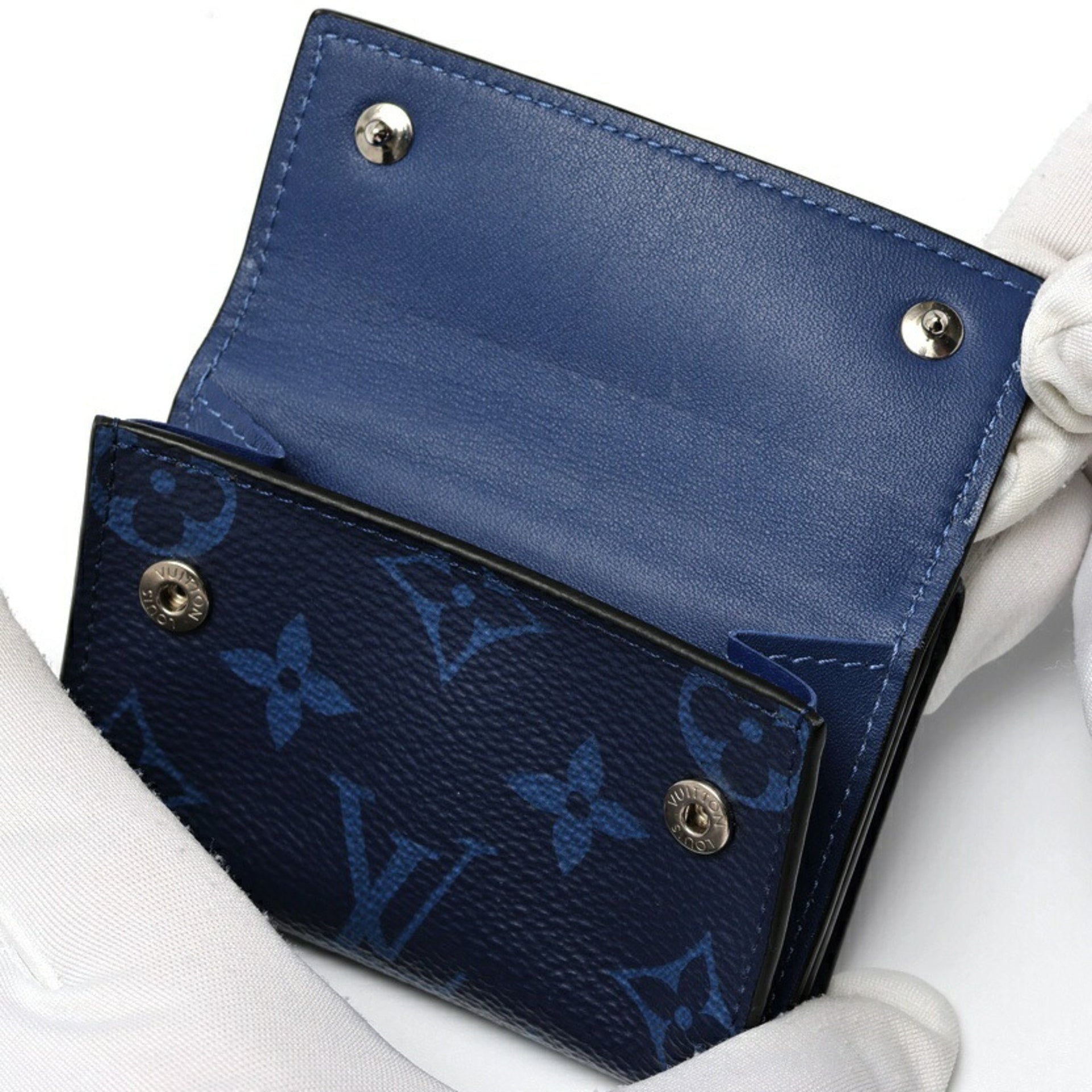 Louis Vuitton Discovery Compact Wallet Trifold M67620 Taiga Llama Blue K-159401