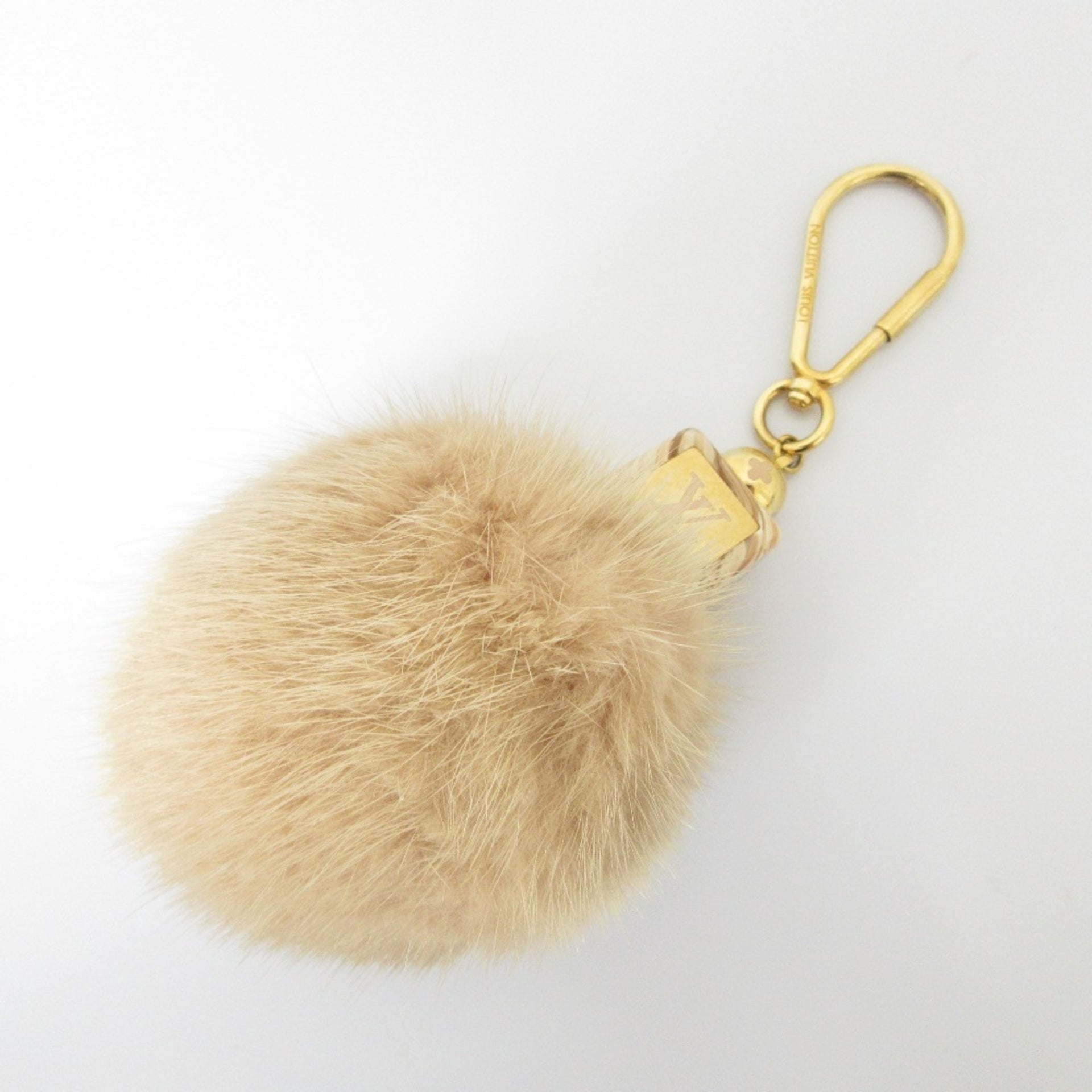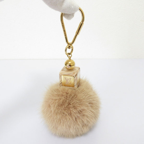 LOUIS VUITTON Fluffy Mink Fur Bag Charm Keychain M67943 Pink Beige Gold Women\'s