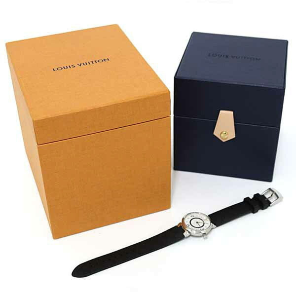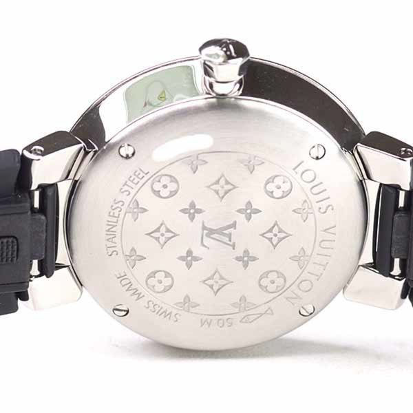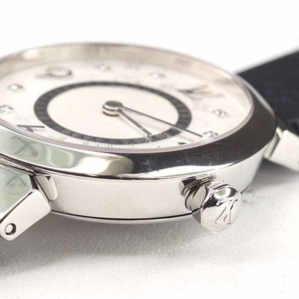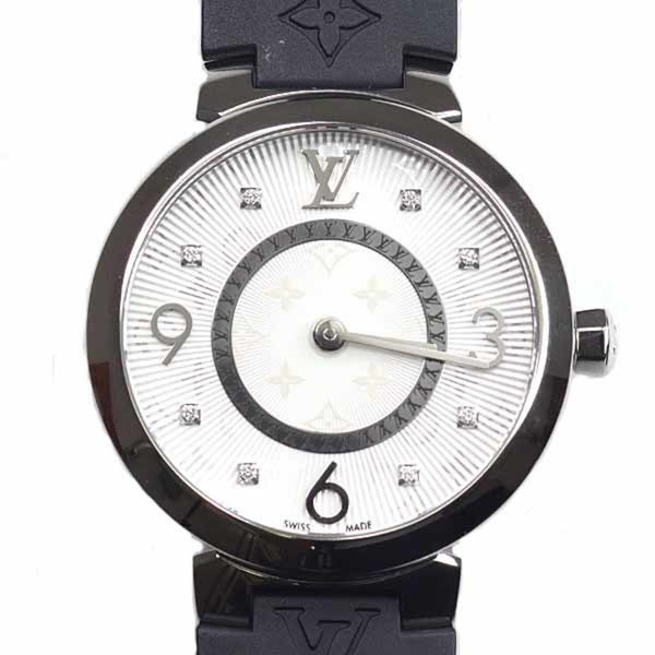 Louis Vuitton LOUIS VUITTON Women\'s Watch Tambour 8P Diamond Quartz Rubber Strap Q12MG Silver Finished