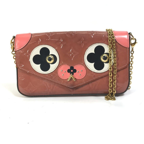LOUIS VUITTON M62767 Monogram Vernis Pochette Felicie Chain Wallet/Shoulder Bag in Patent Leather, Pink