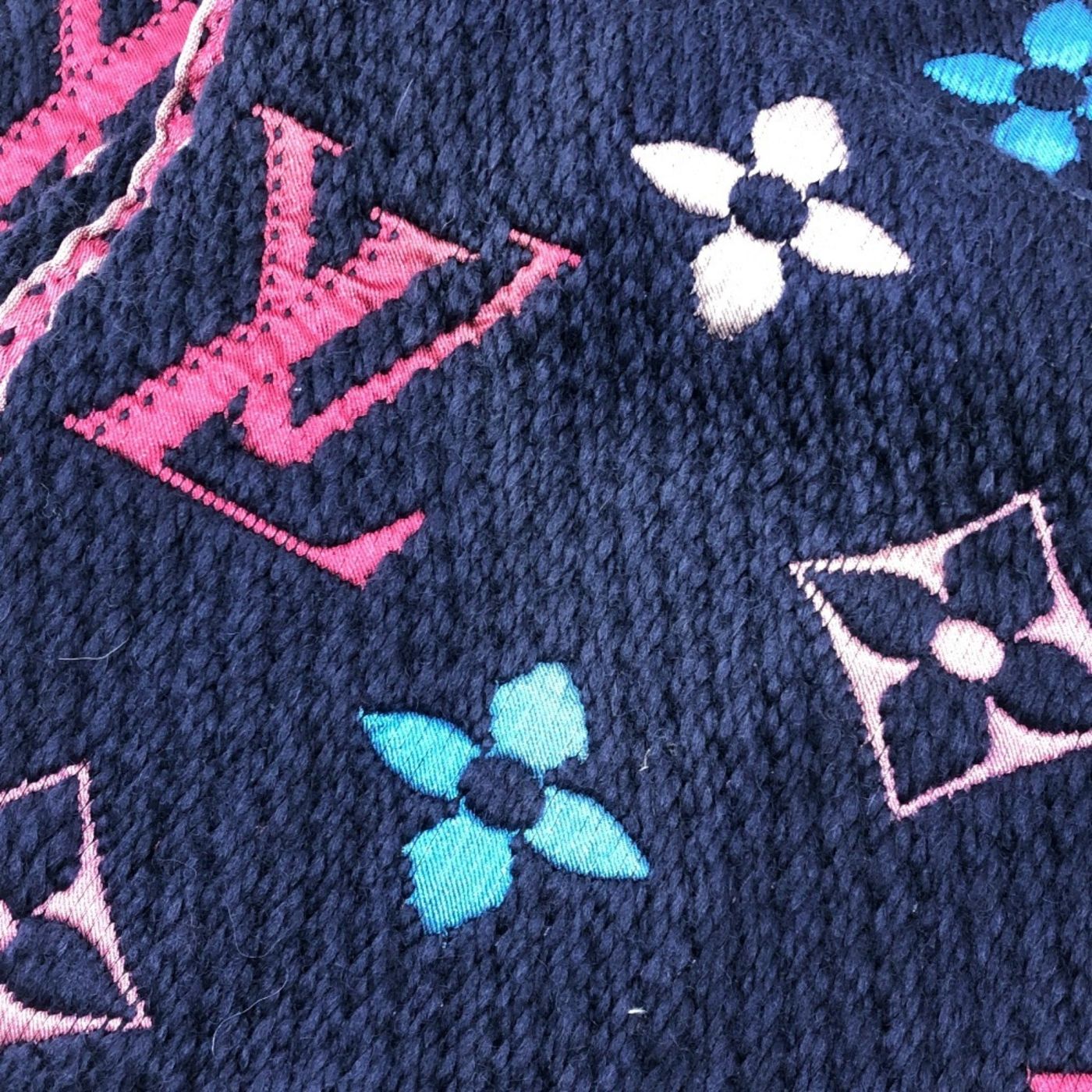 LOUIS VUITTON M70899 Monogram Echarpe Logomania Rainbow Scarf, Wool/Silk, Women\'s, Navy x Pink
