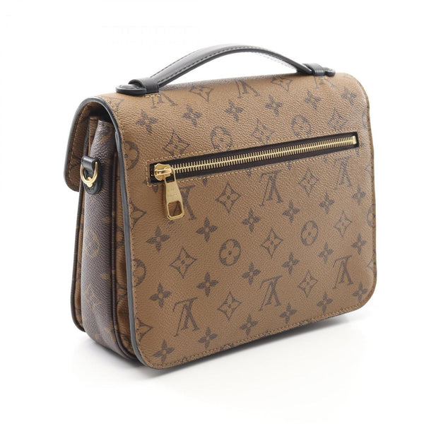 Louis Vuitton Metis MM Pochette Handbag in Coated Canvas and Leather with Monogram Reverse, Women\'s, Brown Black, M44876