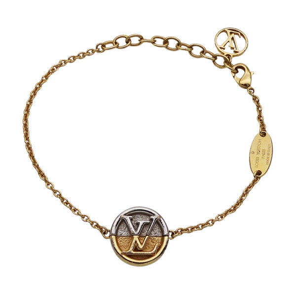 Louis Vuitton Monogram Bracelet for Men and Women, Metal, LtoV, Gold Silver, M69689, LV Initial, Two-Tone Design