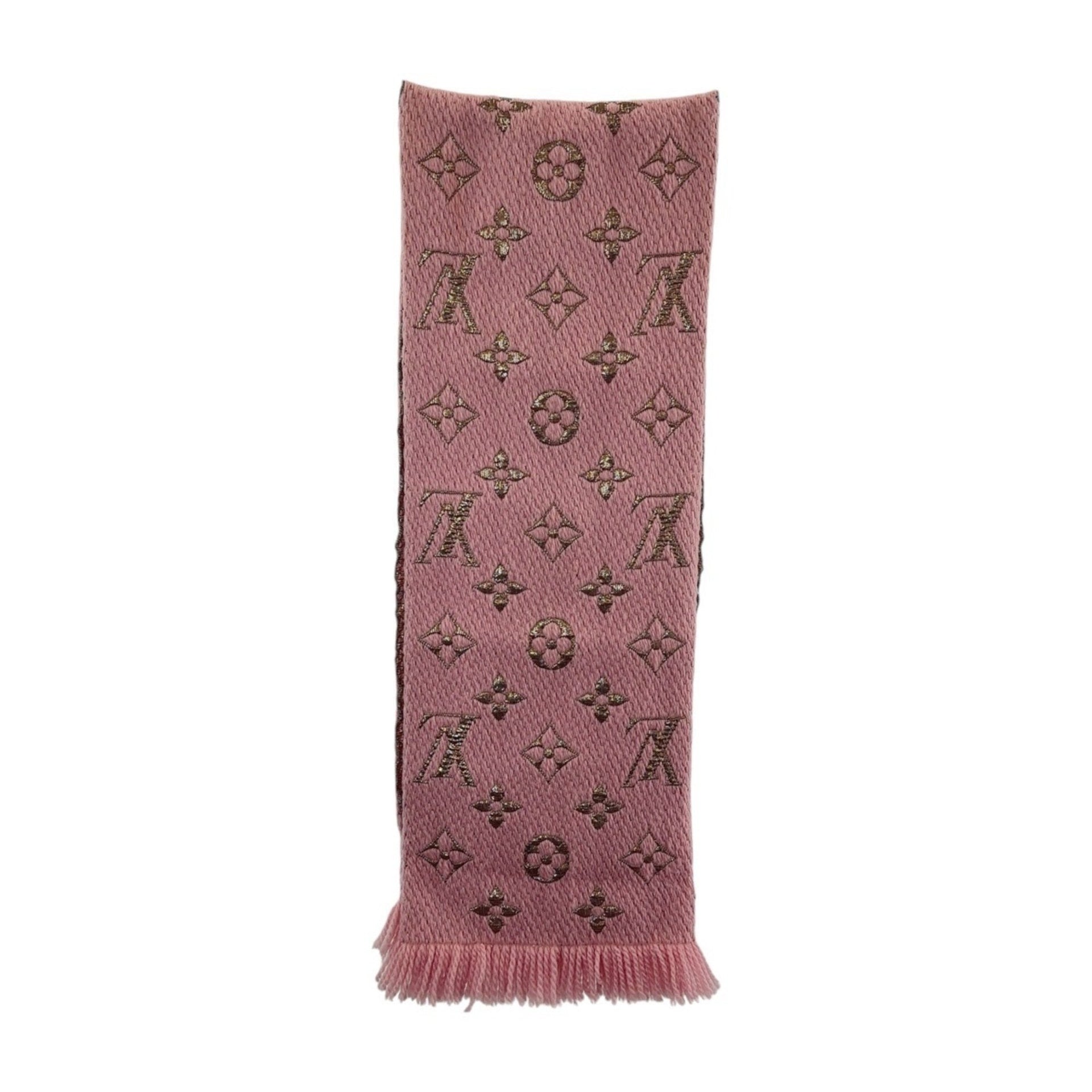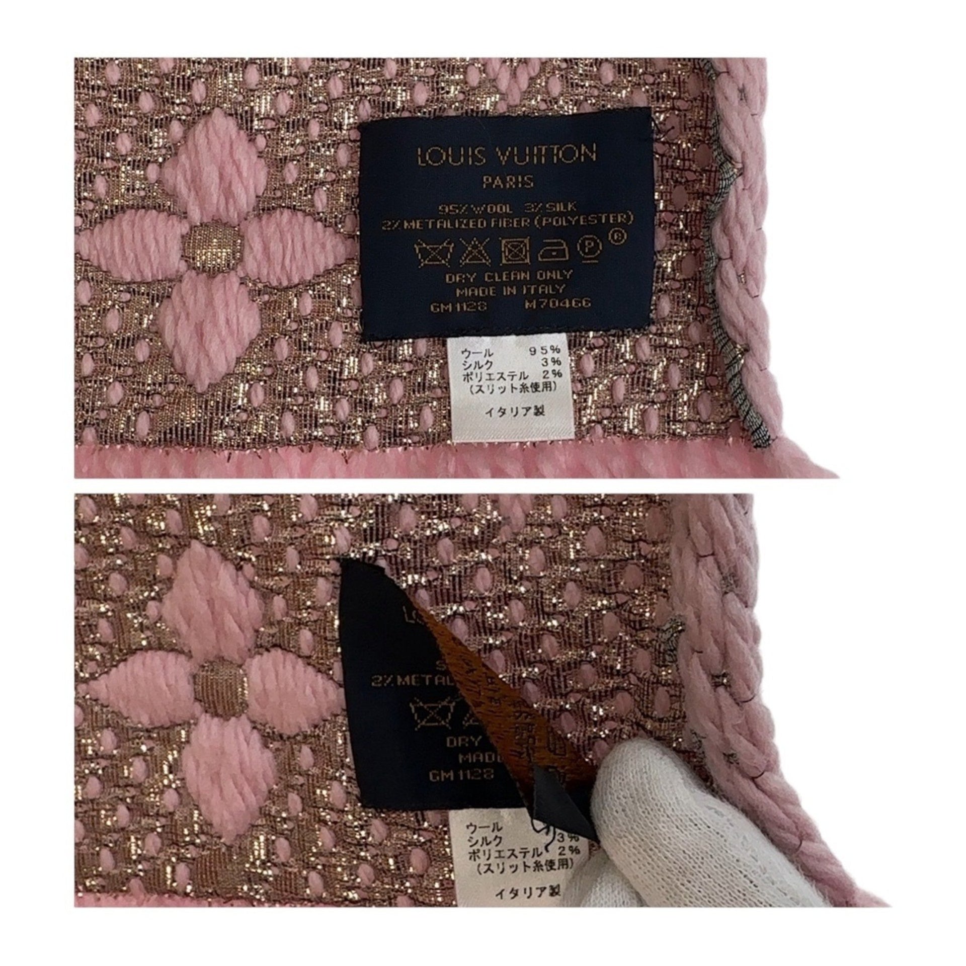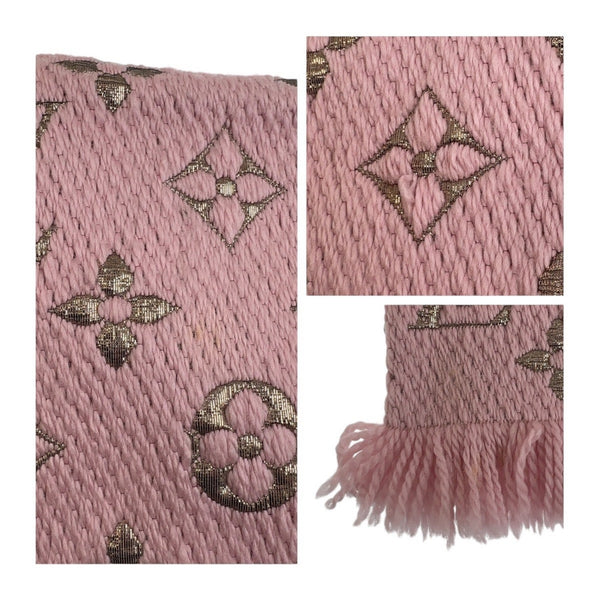 LOUIS VUITTON Monogram Echarpe Logomania Shine Rose Ballerine Gold Wool Scarf M70466