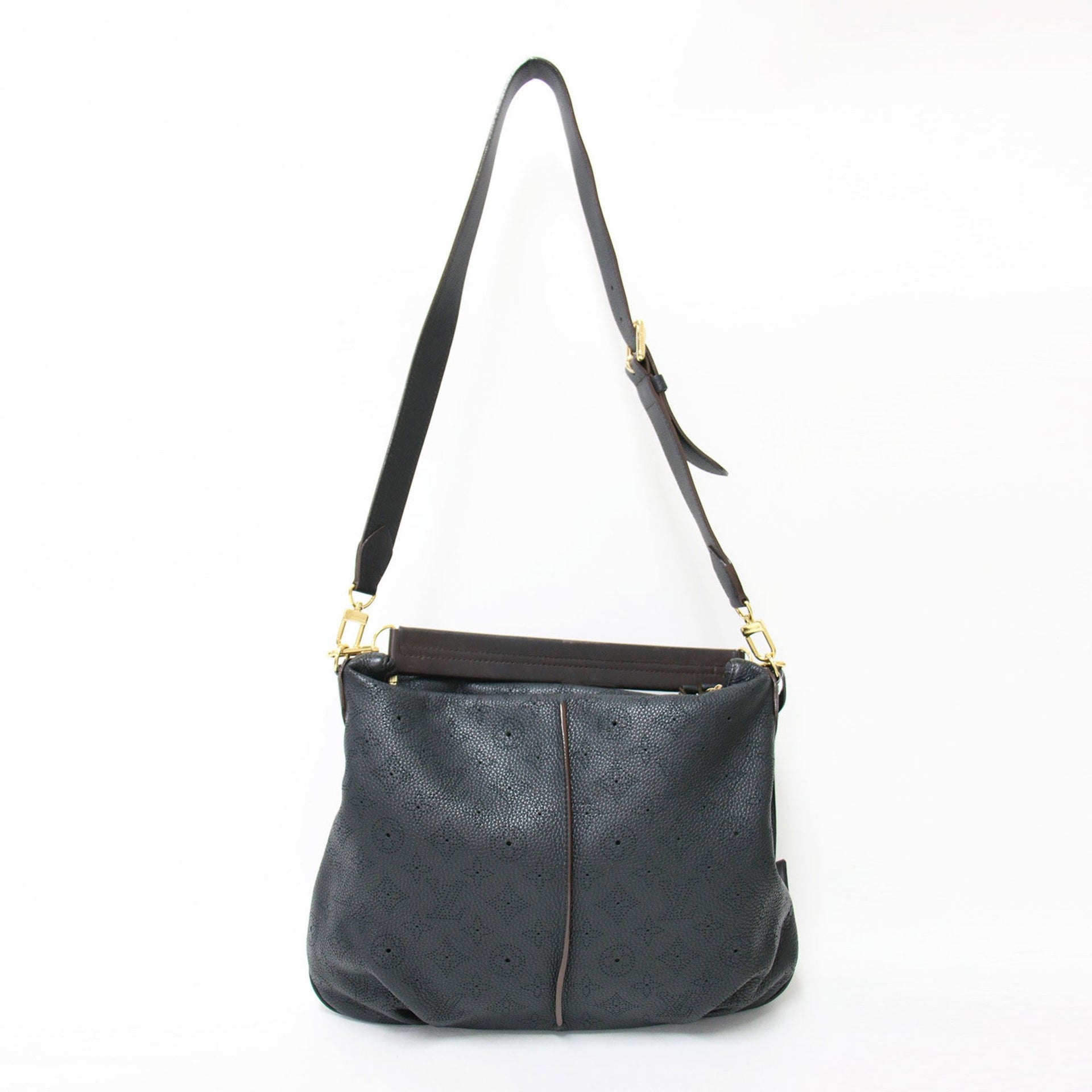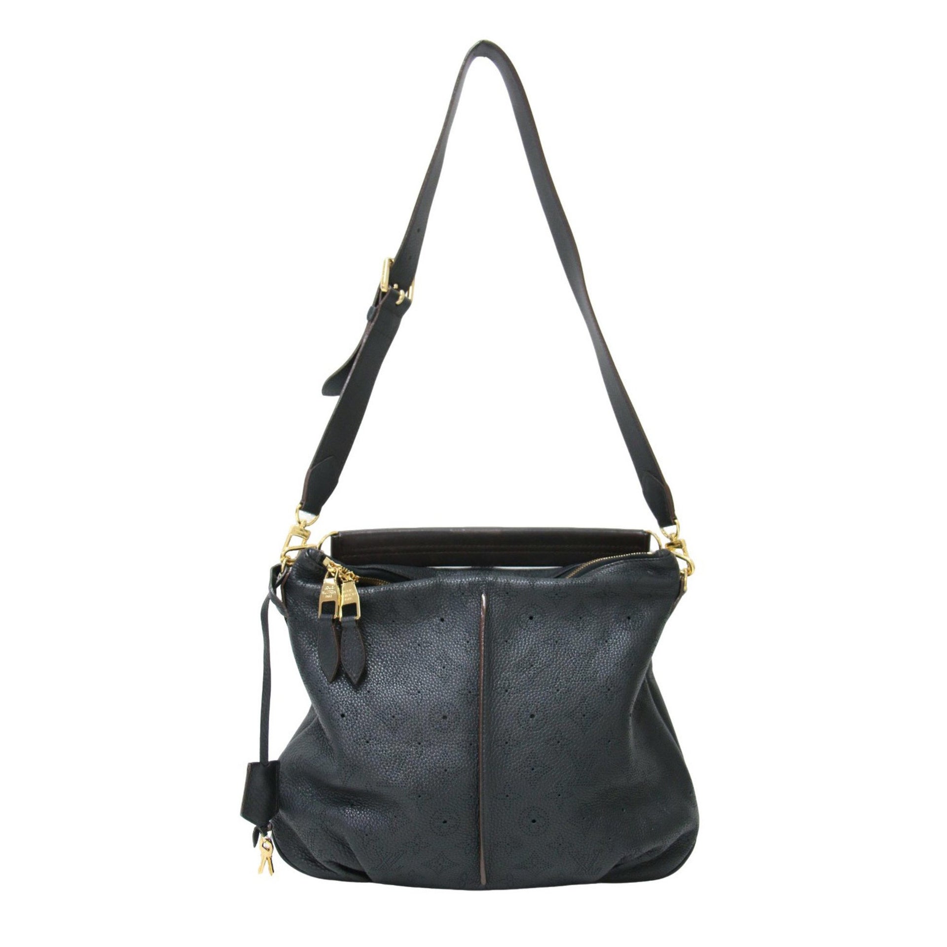 LOUIS VUITTON Monogram Mahina Selene PM Shoulder Bag M94035 in Black and Gold, Hobo Leather