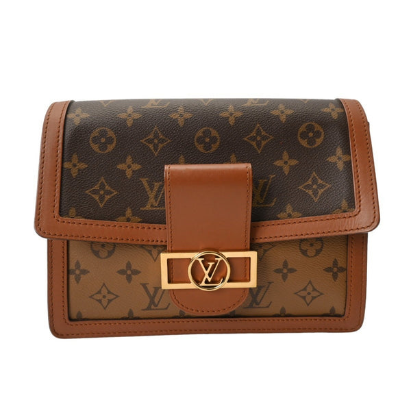 LOUIS VUITTON Monogram Reverse Dauphine MM (old model) in camel/brown, M44391, women\'s canvas shoulder bag
