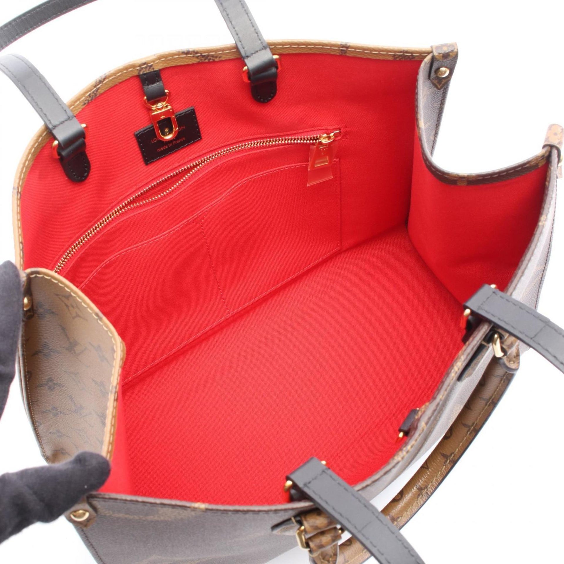 Louis Vuitton On the Go MM Tote Bag, Coated Canvas and Leather, Monogram Giant Reverse, Women\'s, Brown Beige, M45321
