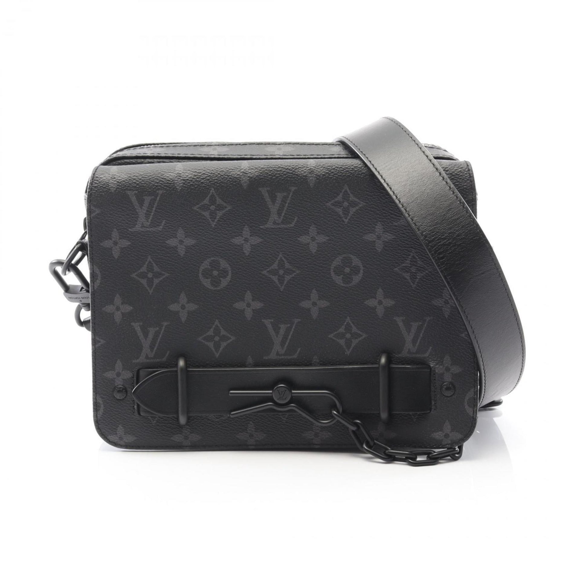 Louis Vuitton Steamer Messenger Shoulder Bag in Coated Canvas and Leather, Monogram Eclipse, Gray, Men\'s, M45585