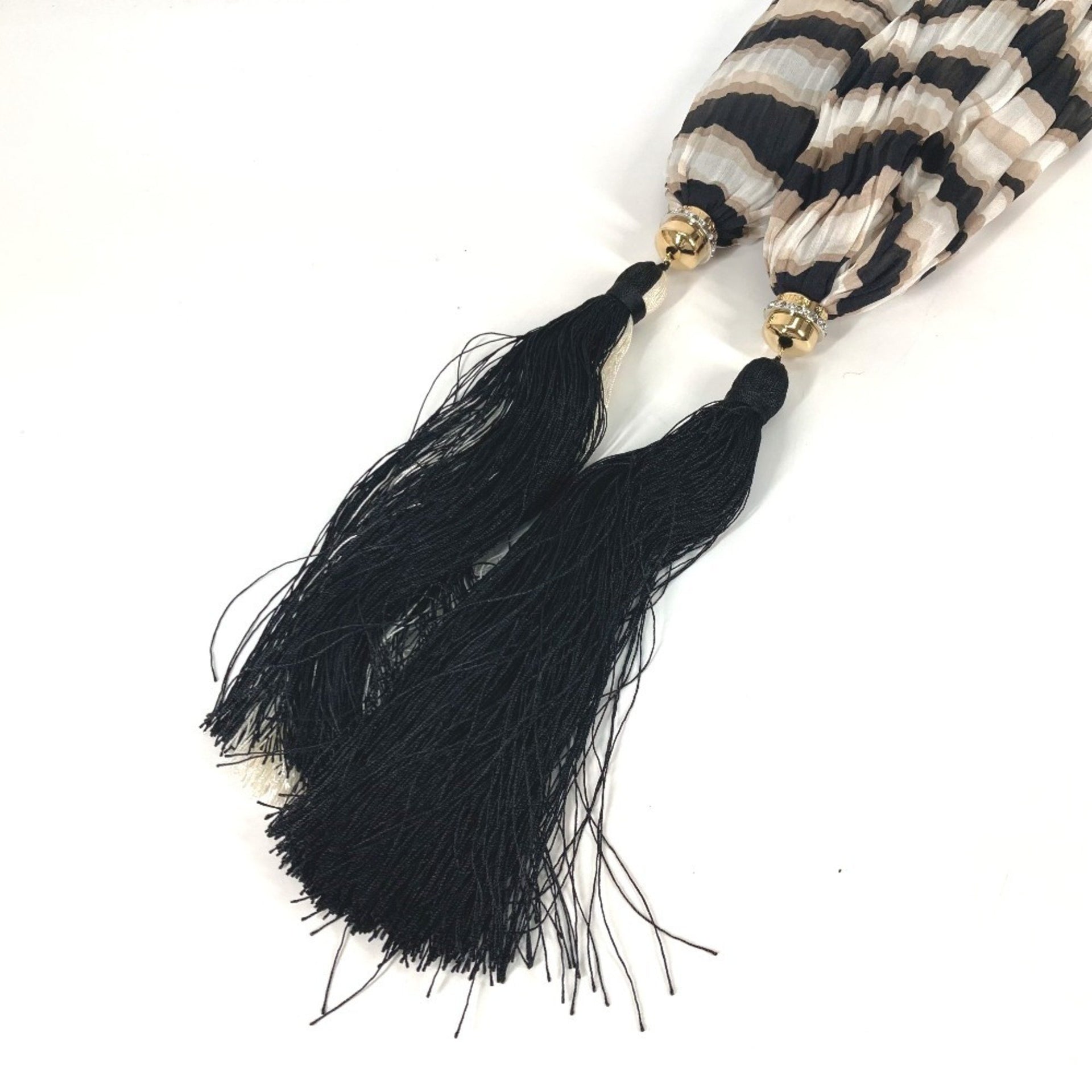 LOUIS VUITTON Tassel Shawl with Fringe and Rhinestones, Silk Stole, Women\'s, Brown