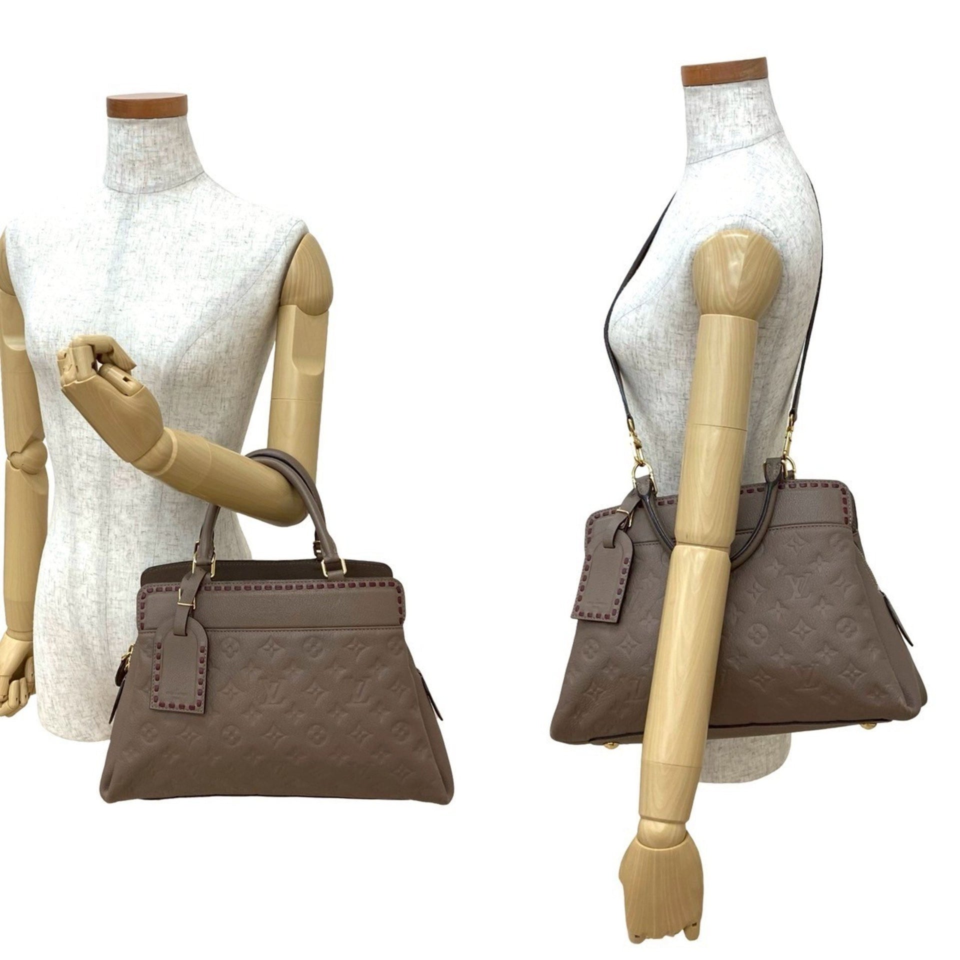 LOUIS VUITTON Vosges Monogram Empreinte Leather 2-Way Handbag/Shoulder Bag in Taupe Glace (na1-1)