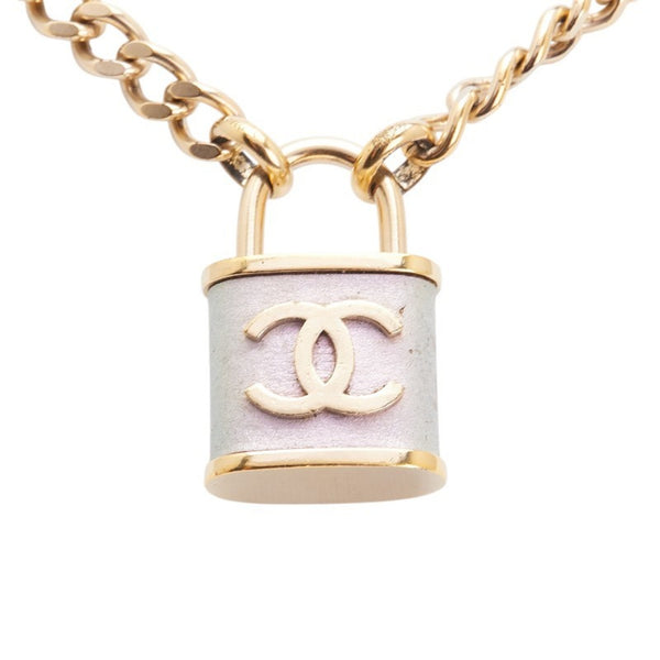Chanel Coco Mark Cadena Padlock Motif Chain Necklace, Gold Plated, Women\'s