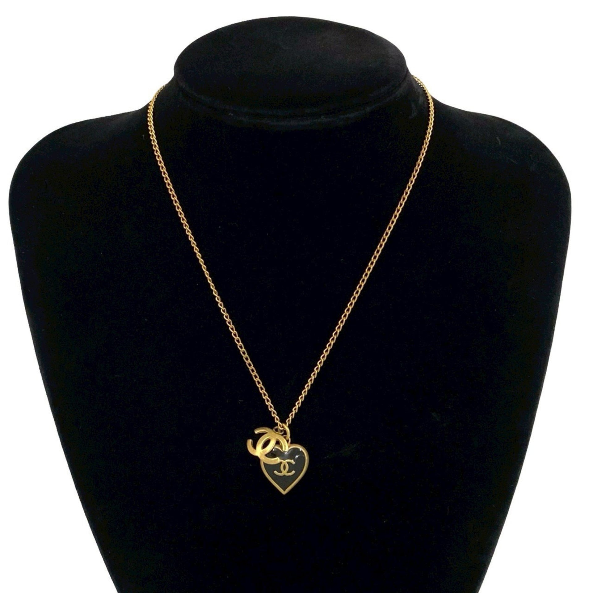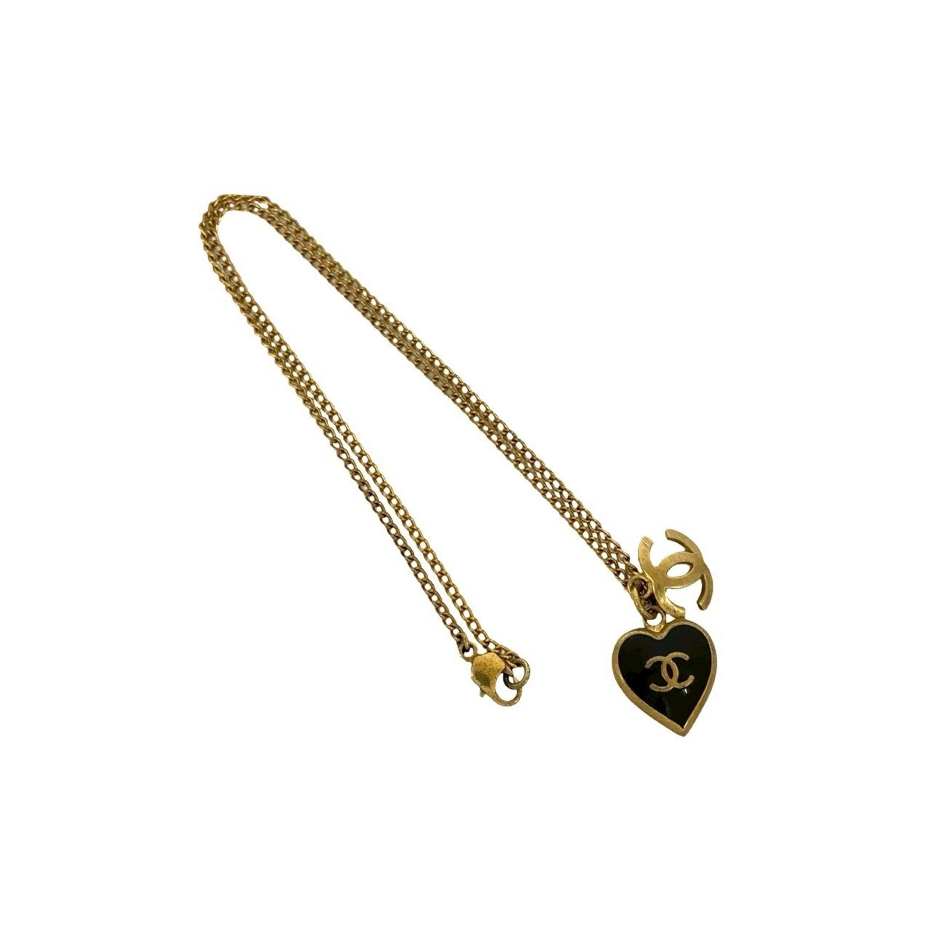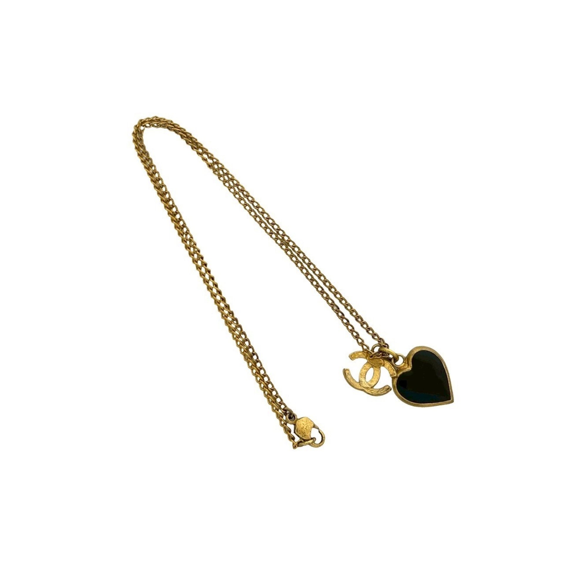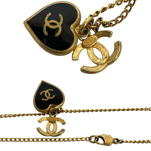 CHANEL Coco Mark Heart Motif GP Chain Necklace Pendant in Gold and Black (69096)