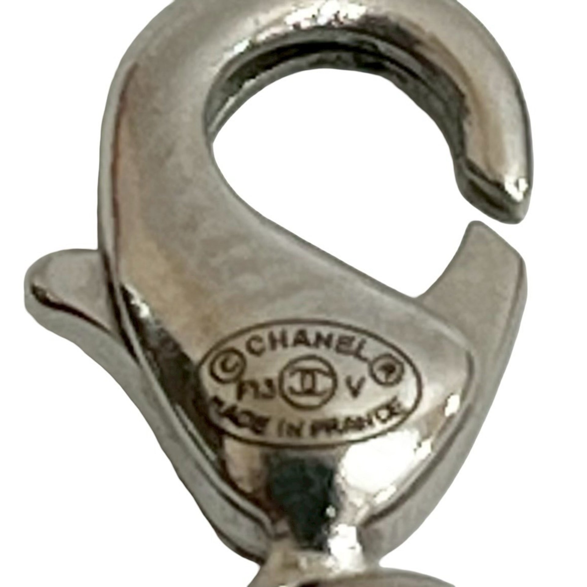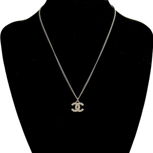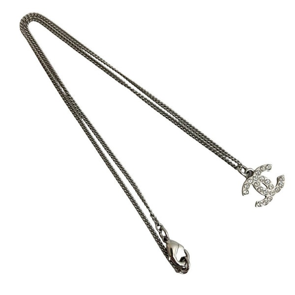 CHANEL Coco Mark Metal Rhinestone Chain Necklace Pendant in Silver 57614