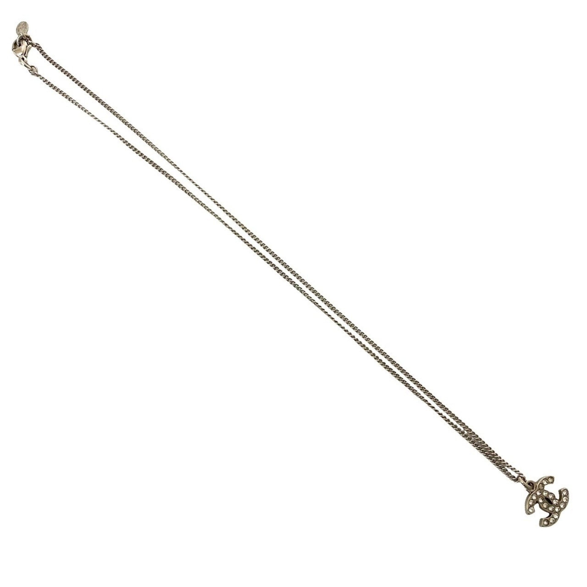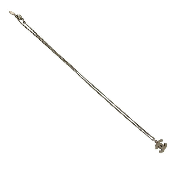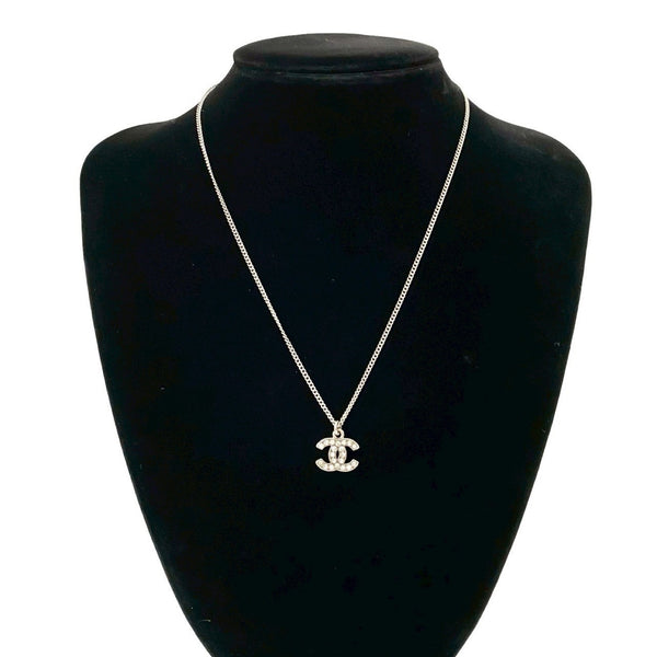 CHANEL Coco Mark Metal Rhinestone Necklace Pendant in Silver 01541