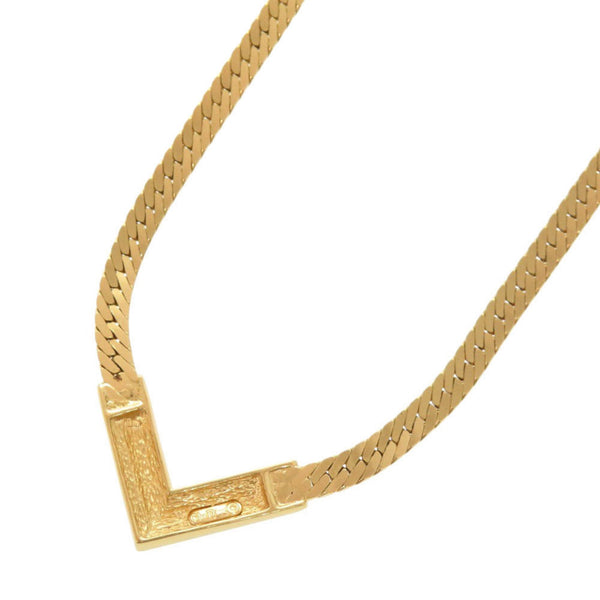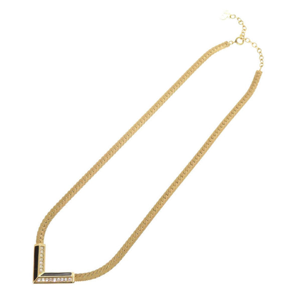 Christian Dior V-shaped metal rhinestone gold necklace 0037
