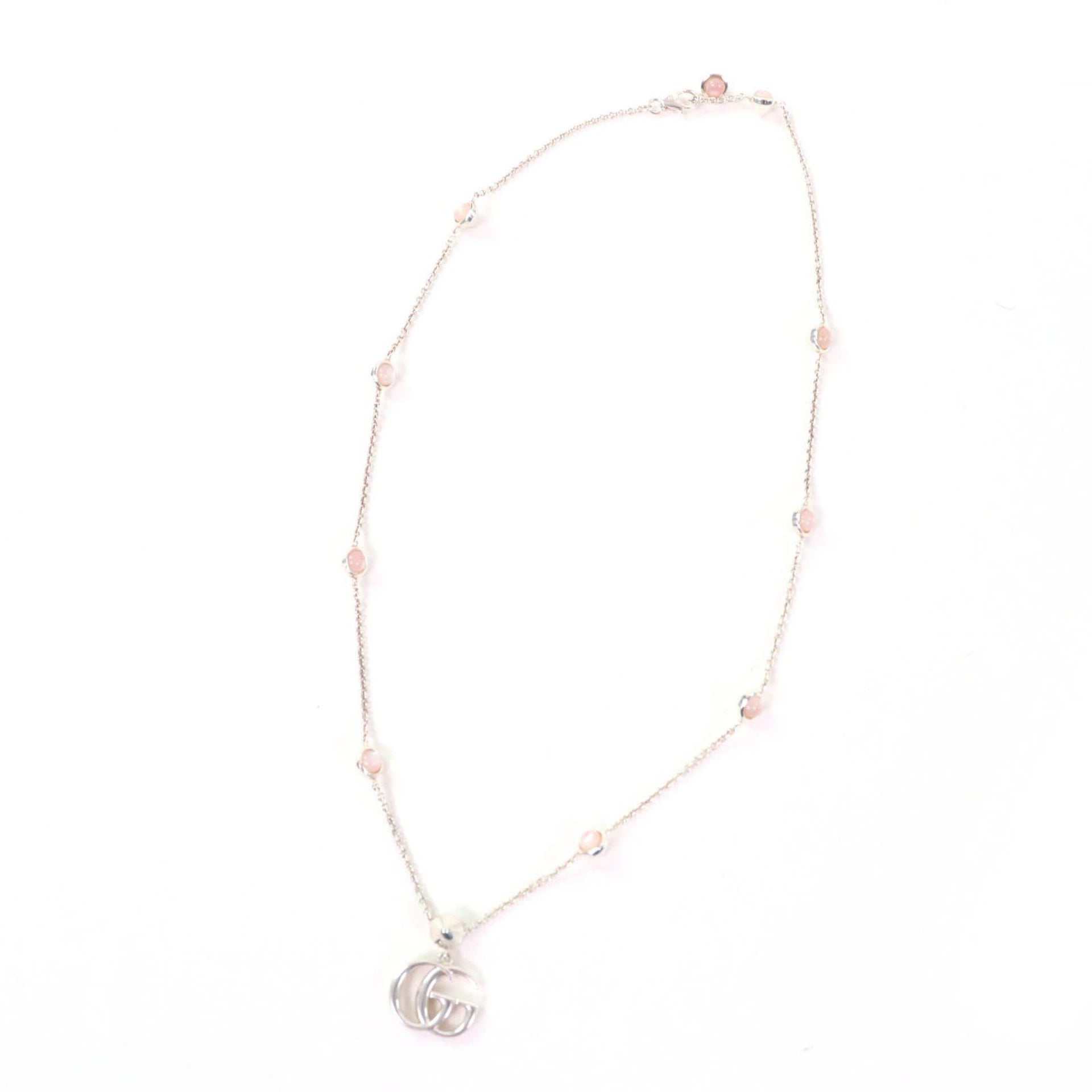 GUCCI 527399 Double G Mother-of-Pearl Necklace in AG925 Silver and Pink, with Box Dust Bag, Made Italy, Weight 10.1g, Women\'s