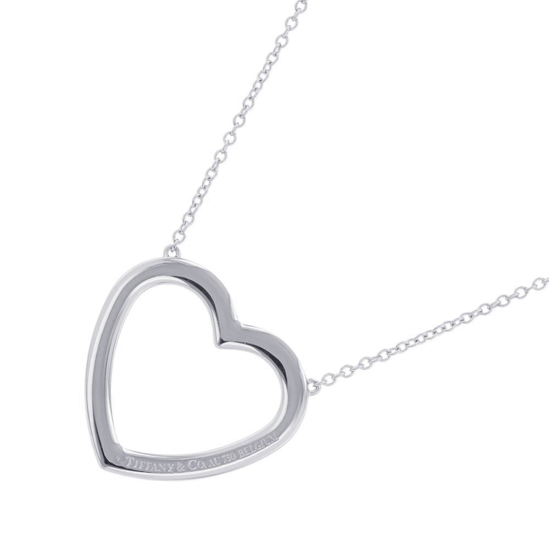 Tiffany & Co. Metro Heart Necklace with Diamonds in 18K White Gold.