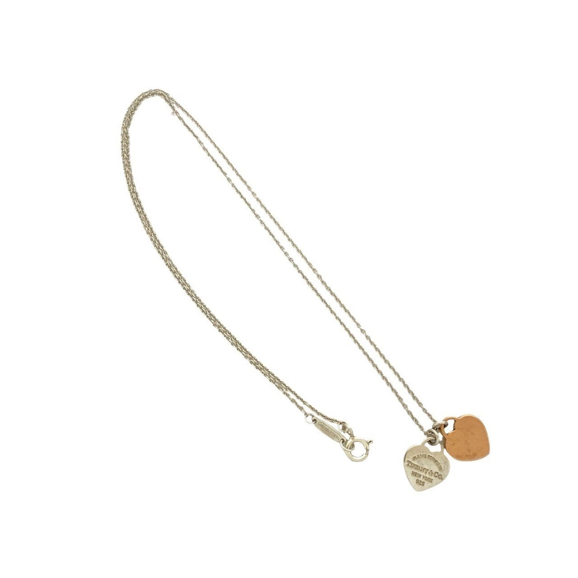 TIFFANY & Co. Tiffany Return to Double Heart Sterling Silver 925 Metal Necklace Choker Pendant 97439