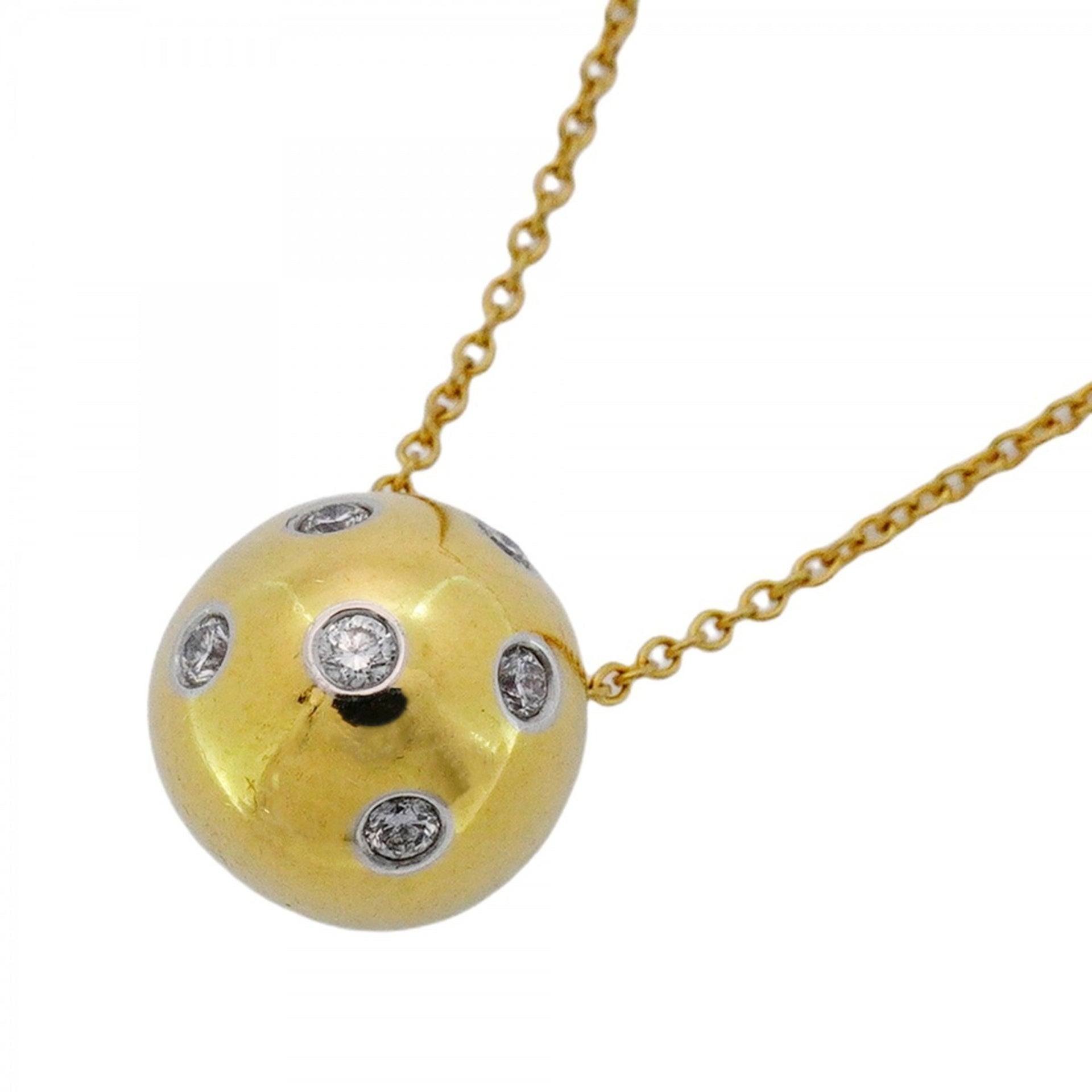 Tiffany Necklace Dots Ball 6PD 18KYG Yellow Gold Pt950 Platinum Diamond Women\'s