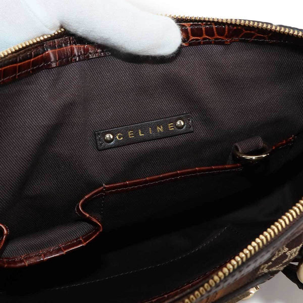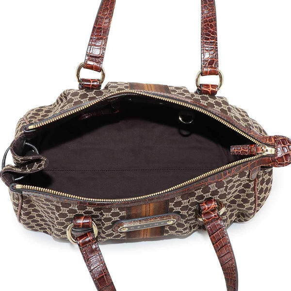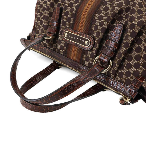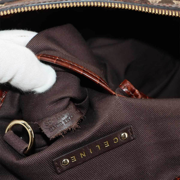 Celine Macadam Handbag in Dark Brown Canvas and Leather with Gold Hardware