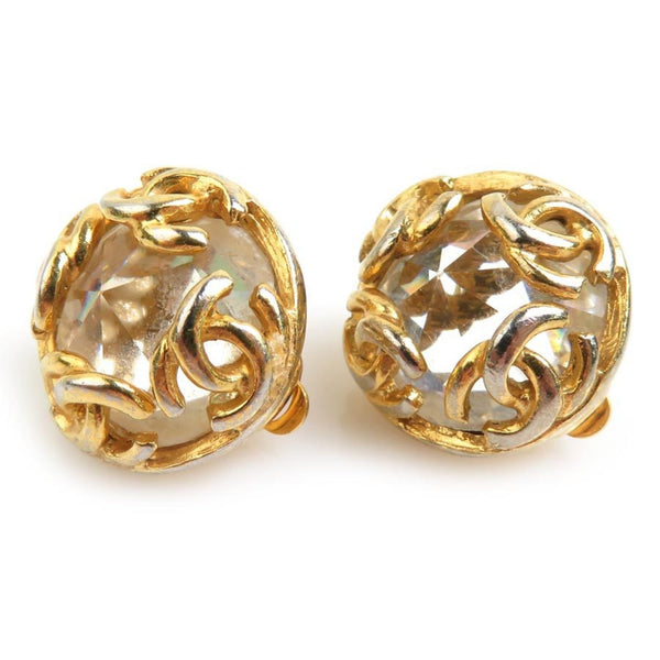 CHANEL Coco Mark Metal Rhinestone Earrings in Gold and Silver for Women, e60884a