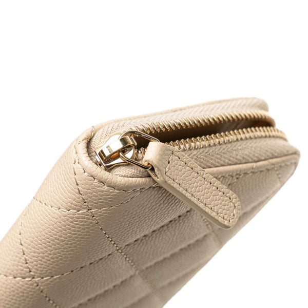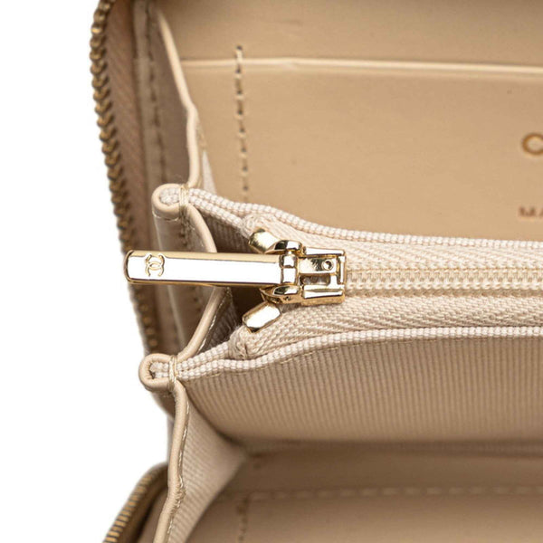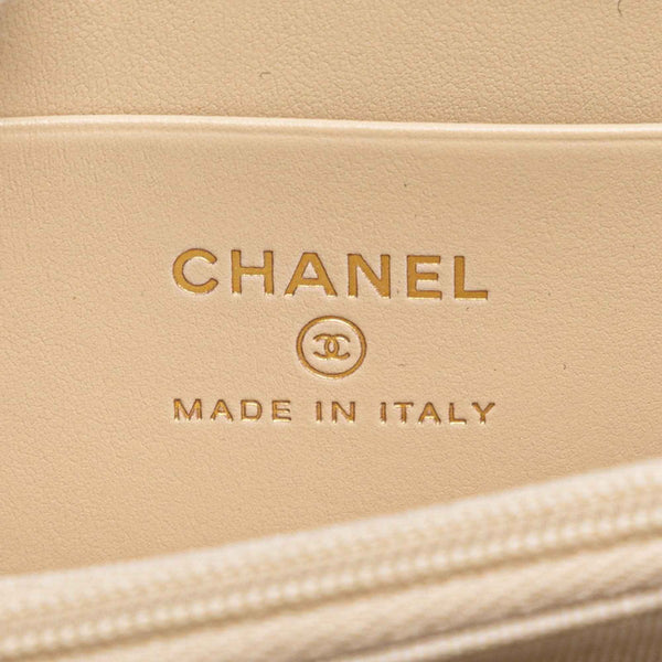CHANEL Matelasse Coco Mark Rhinestone Wallet/Coin Case Beige Caviar Leather Women\'s