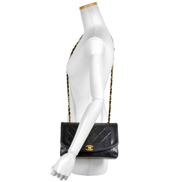 CHANEL Matelasse Diana Chain Shoulder Bag Lambskin A01165 Black 7-digit Coco Mark