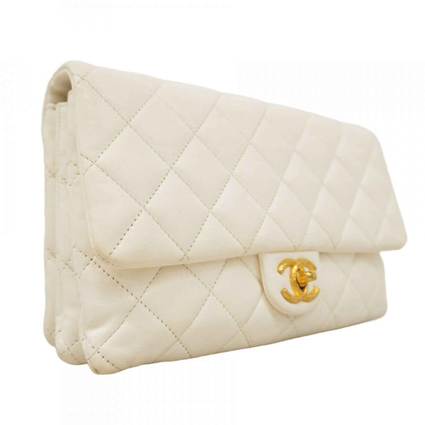 Chanel Matelasse Shoulder Bag with Chain Bag, Lambskin, White, Women\'s