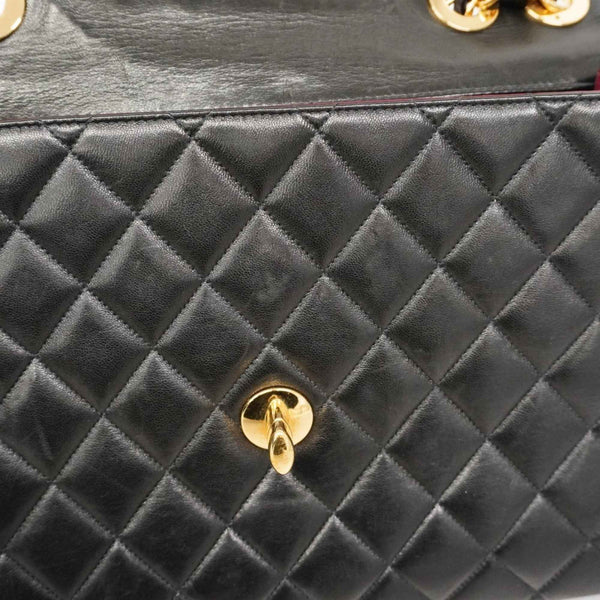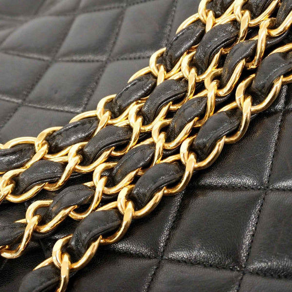 Chanel Shoulder Bag, Large Matelasse, Double Chain, Lambskin, Black, Women\'s