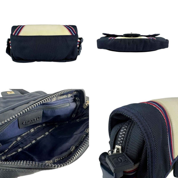 CHANEL Sport Line Shoulder Bag in Nylon Canvas, Navy and Off-White, Women\'s, z7102