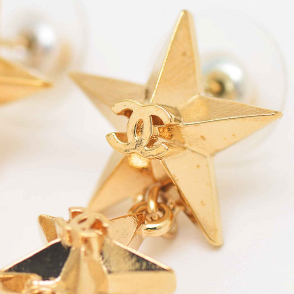 Chanel Triple Star Coco Mark Earrings, Champagne Gold, A17C