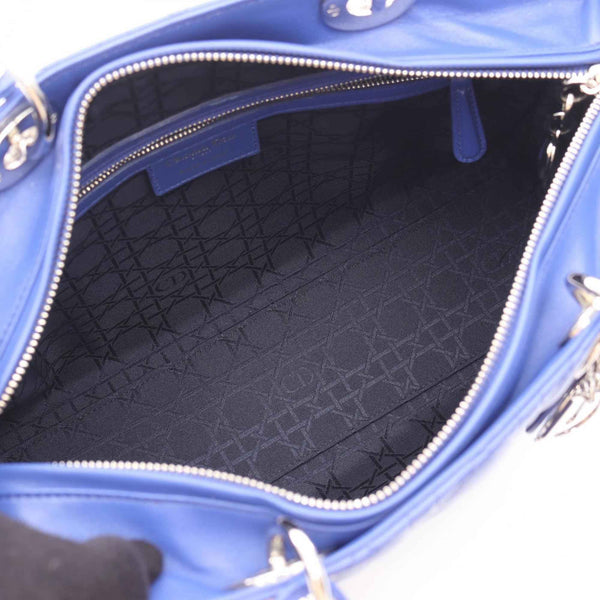 Christian Dior Dior Lady Large Cannage Handbag, Leather, Women\'s, Blue