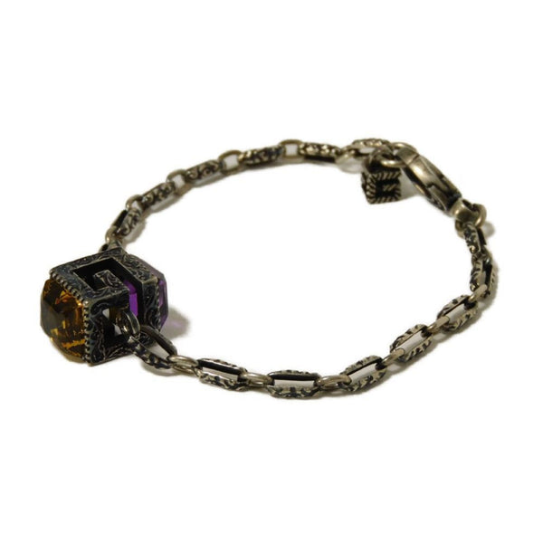 Gucci G Cube Crystal 17 Square Bracelet with Smoked Finish, Rhinestones, and Arabesque Design in Ag925 (550888 J7863 8192) for Women