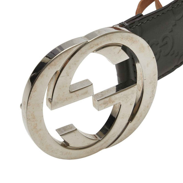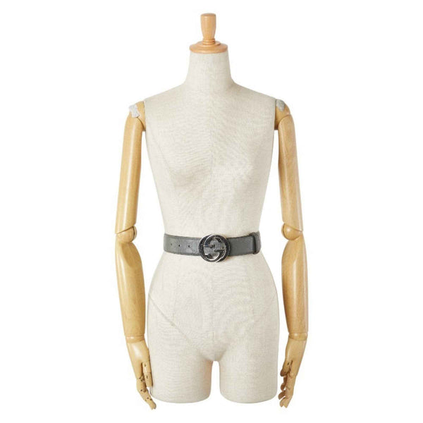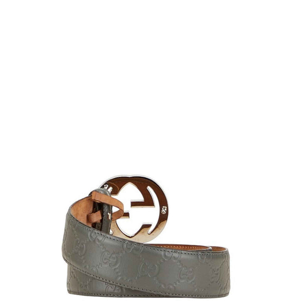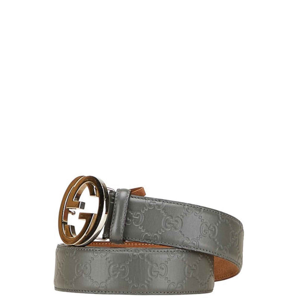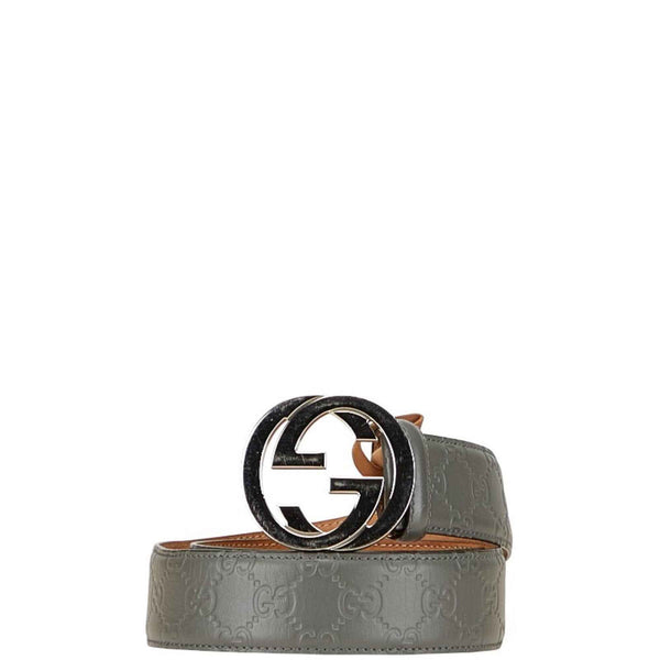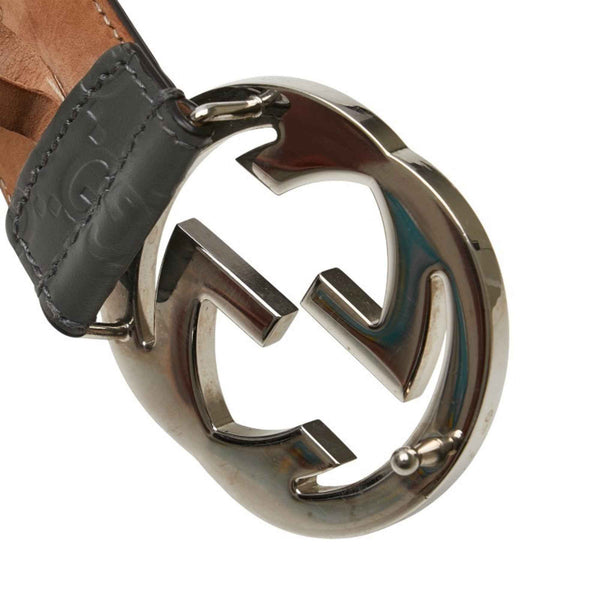 Gucci Guccissima Interlocking G Belt, Sizes: 85-34, Gray Leather, Men\'s, 411924