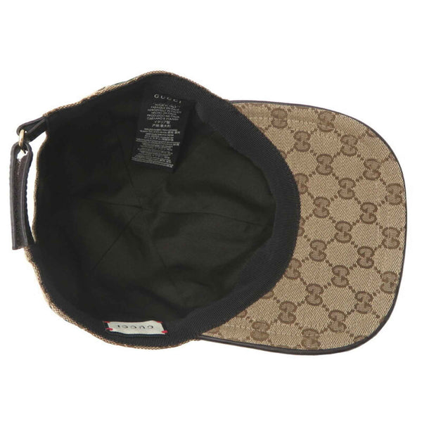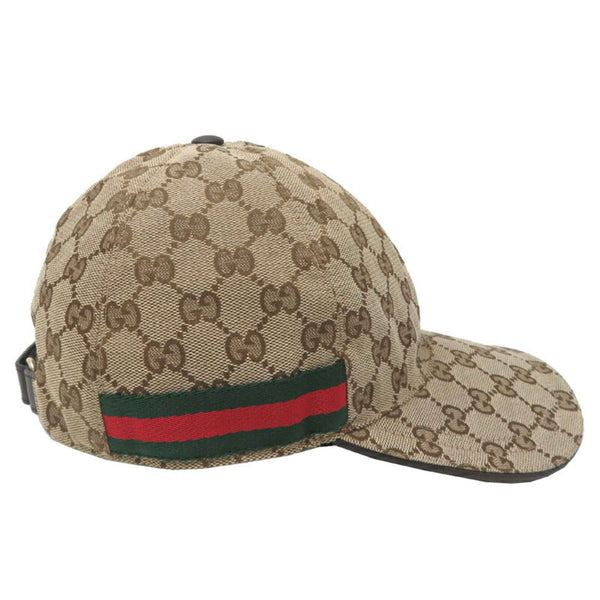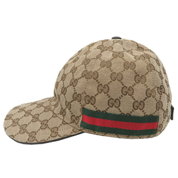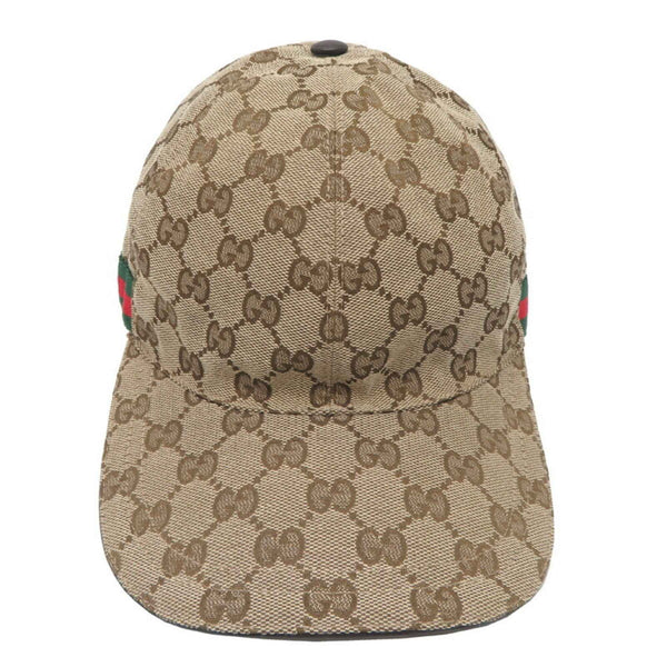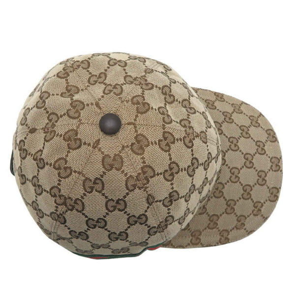 Gucci Men\'s Baseball Cap with Web Stripe, Size L, 200035, Beige GG Canvas