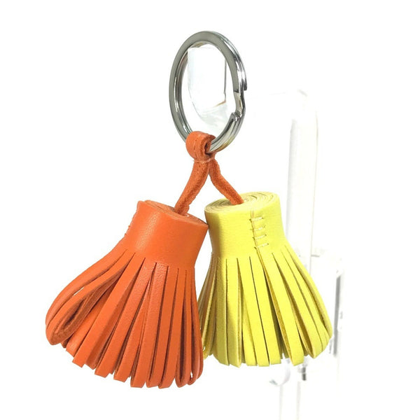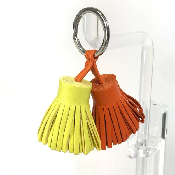HERMES Fringe Carmen Unodos Bag Charm Key Ring Keychain Anjo Miro Women\'s Orange and Yellow Like New