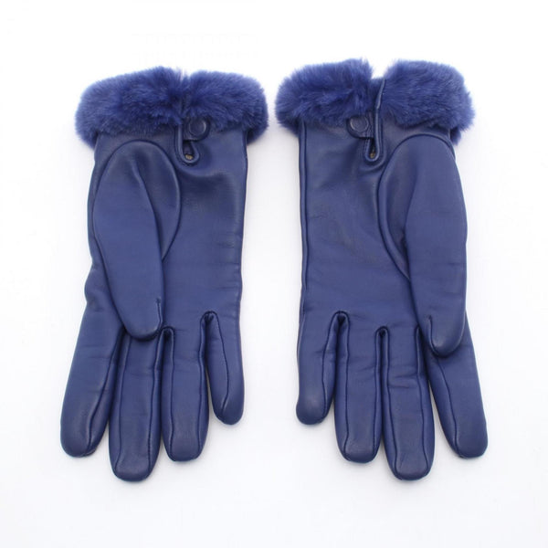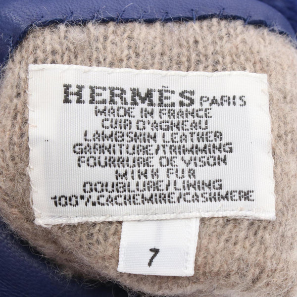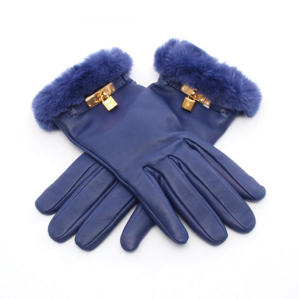 Hermes Hermès Princess Cadena Gloves, Leather and Mink, Women\'s, Blue